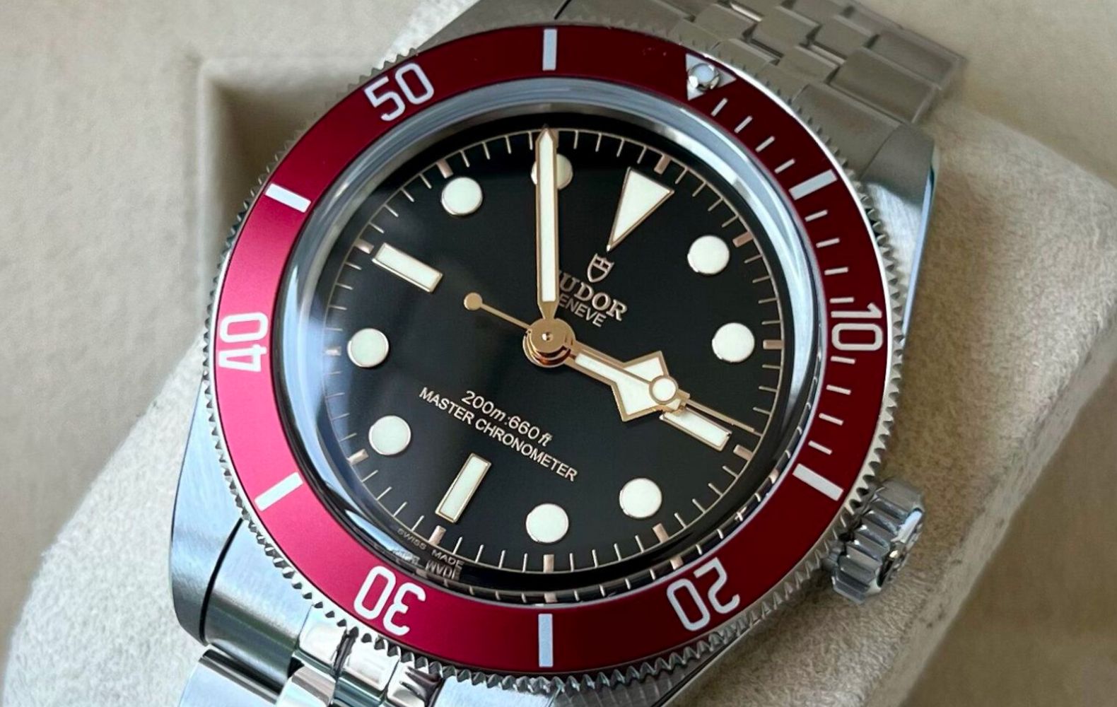 La Tudor Black Bay est l'une des montres les plus populaires du catalogue Tudor. Elle est désormais disponible avec un cadran noir, des index patinés et une lunette rouge qui fait vraiment bonne figure sur ces nouvelles montres Tudor Black Bay. Vous pouvez désormais choisir entre un bracelet à trois mailles en acier inoxydable, un bracelet à cinq mailles (type Jubilee) ou un bracelet en caoutchouc évoquant l'Oysterflex de Rolex.