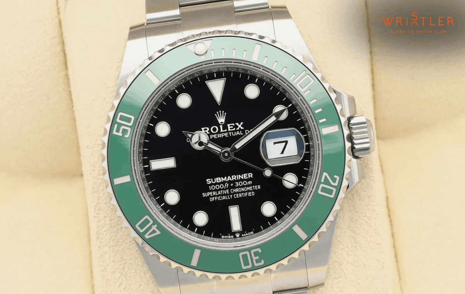 Pour un investissement à long terme, la Kermit est le choix le plus rare, surtout les premiers modèles Flat 4. Mais au fait, c’est quoi une lunette Rolex Flat 4 ? C’est la forme du chiffre 4 sur l’insert de la lunette, au niveau du repère "40" minutes. Sur ces premières versions, le haut du 4 est plat au lieu d’être pointu. Un détail minime, mais qui a son importance pour les collectionneurs. Les Kermit Flat 4 sont les plus anciennes et les plus recherchées, d’où leur prix souvent élevé. La Hulk a été produite plus longtemps et reste très prisée depuis son arrêt de production. Quant à la Starbucks, elle est toujours en production, mais en trouver une chez un revendeur agréé relève du parcours du combattant. Pour moi, ce sont comme les différents chapitres d’une même saga. La Kermit, c’est le point de départ. La Hulk, le coup d’éclat. La Starbucks, l’évolution raffinée. C’est toute cette progression qui rend ce trio si fascinant. Un détail souvent négligé : le bracelet. Le fermoir de la Kermit est en acier plié. Il fait le job, mais paraît un peu léger comparé aux standards actuels. Celui de la Starbucks, par contre, est un vrai tank. Usiné, pas estampé. On dirait qu’il peut survivre à tout. Et le système Glidelock, je l’utilise plus souvent que je ne l’aurais cru, surtout en été. Il permet un réglage à la volée jusqu’à 20 mm sans outil. Un vrai plus quand le poignet gonfle avec la chaleur, ou quand on veut la porter par-dessus une manche ou une combinaison. On ajuste, on clique, et c’est réglé.