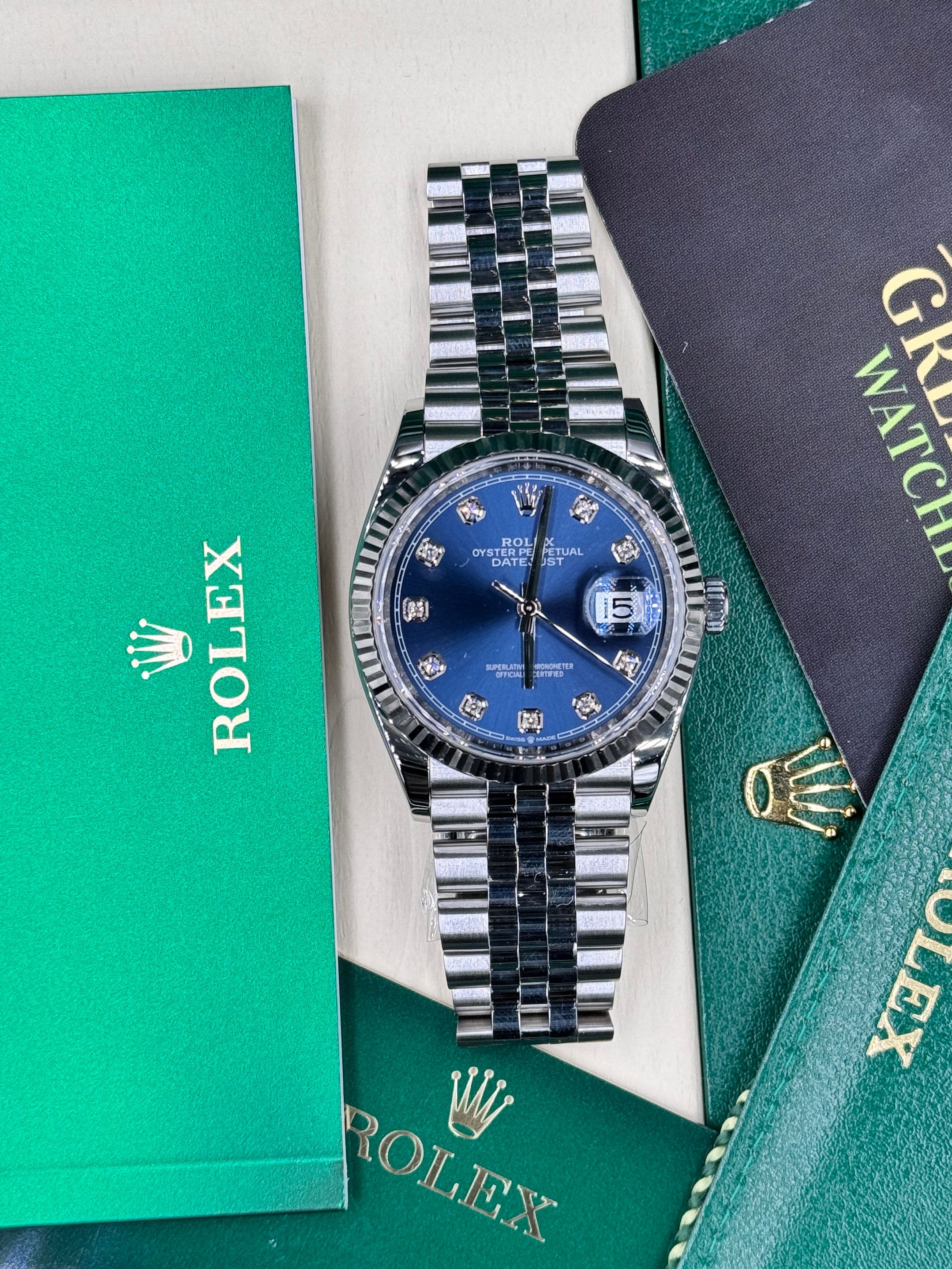 Rolex Datejust 36mm 126234 Blue diamond dial 9/2020 new style card good condition