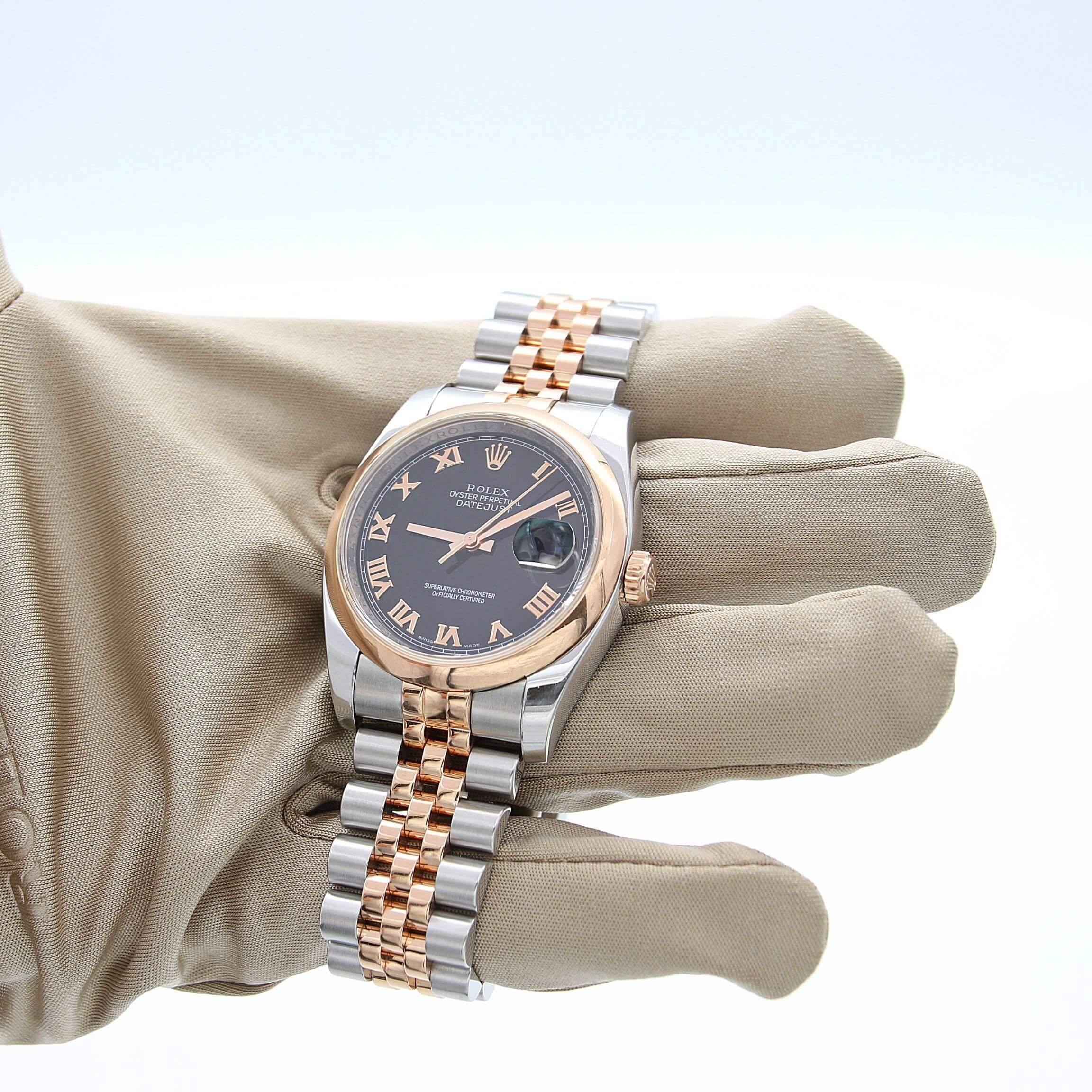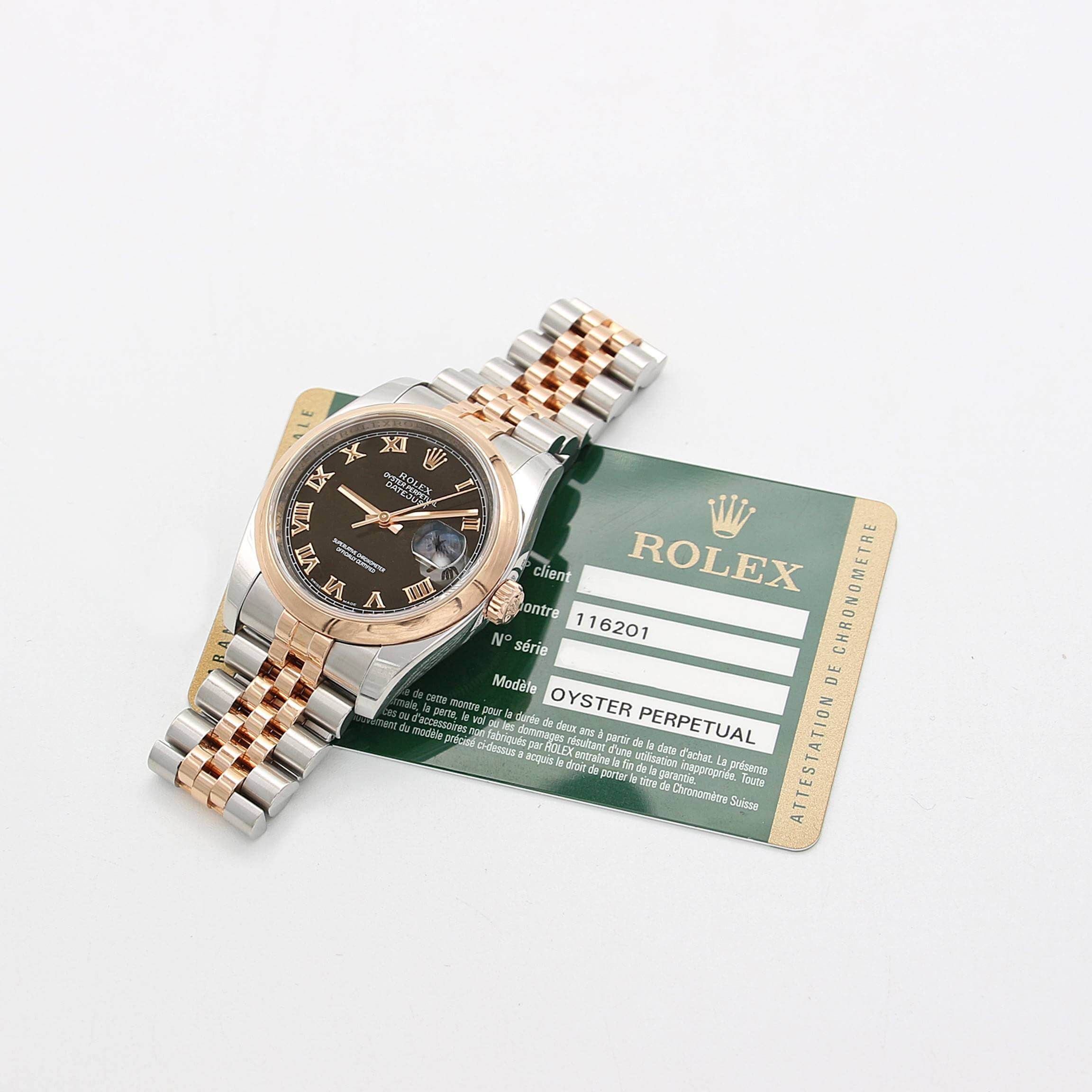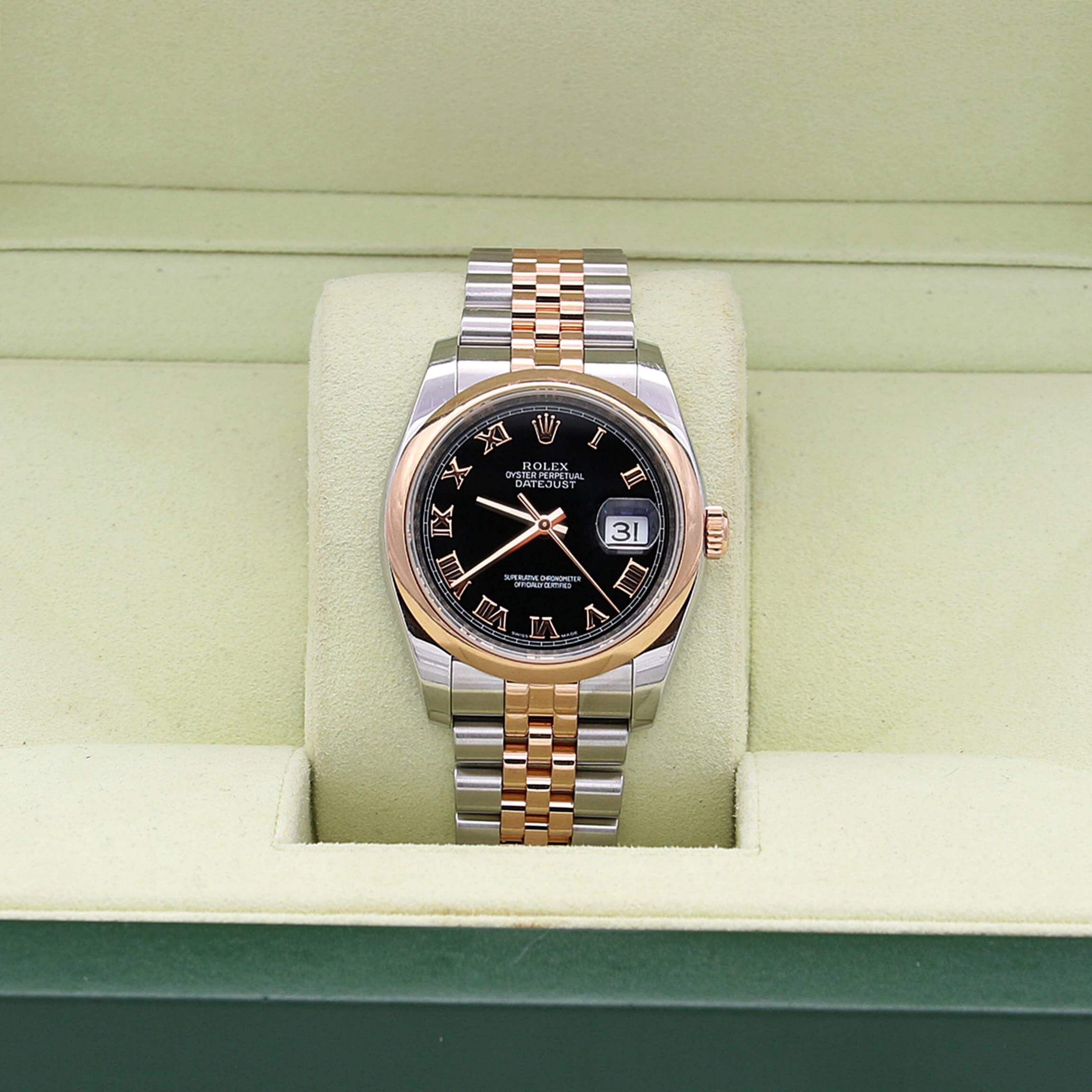 For sale at Debonar Watches: pre-owned Rolex Datejust 116201, in excellent conditions, with a black dial with roman numbers, on a Jubilee bracelet, full set. This Rolex Datejust 116201, complete with a Jubilee bracelet, offers the perfect combination of elegance and comfort.This 116201 is made of gold and steel, including bracelet and bezel.One of the biggest changes Rolex has made to their production base in recent years is their switch from 316L stainless steel to 904L. The ref. 1162XX series were the first Datejusts cast in the new metal.The reference 116201 is a 36mm watch. For many, 36mm is a relatively small watch (at least by modern standards), but the Datejust has always had an uncanny knack for shrugging off perceptions that apply to virtually all its competitors. A bit of its story:Rolex DateJust (inspired by Rolex Bubbleback) was first introduced in 1945 to celebrate the 40th anniversary of Rolex. The Datejust is one of the earliest Rolex models that survives till today.From its debut way back in 1945, a revolutionary launch that put the brand firmly on the map, it has remained at the top of the company’s bestseller list for three quarters of a century.Rolex’s ref. 162XX series of Datejust watches first emerged in 1988, a replacement for the relatively short-lived ref. 160XX range. BRAND ROLEX MODEL DATEJUST REFERENCE 116201 CASE MATERIAL STEEL/GOLD MOVEMENT AUTOMATIC DIMENSION 36 MM DIAL BLACK ROMAN BEZEL GOLD CRYSTAL SAPPHIRE BRACELET TYPE JUBILEE/GOLD BRACELET MATERIAL STEEL BRACELET LENGHT 18 CM ORIGINAL BOX YES ORIGINAL PAPERS YES YEAR APPROX. '00s-'10s CONDITION EXCELLENT