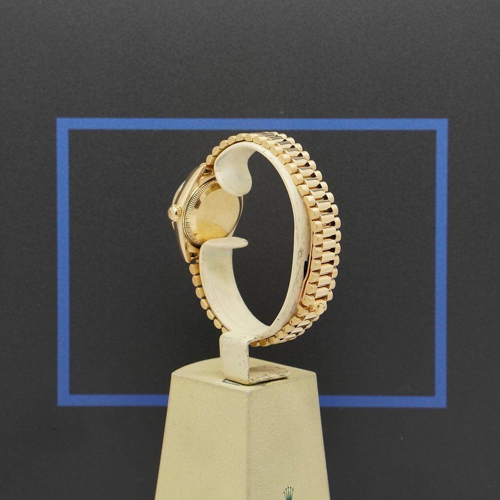 Rolex Lady-Datejust Ref. 69178 | Solid gold | from 1985 | with box. DATA OF THE WATCH: Internal ID: 181 Manufacturer: Rolex Model: Oyster Perpetual Lady Datejust Reference: 69178 Warranty: 24 months Caliber of the movement: 2135 - 29 Jewels Scope of delivery: Rolex box Diameter of the case: 26mm Lug width of the bracelet: 13mm Bracelet: solid Rolex Presidential bracelet Material of the watch: yellow gold Winding: automatic movement Dial: white Roman lugs: solid Glass: Sapphire crystal CONDITION OF THE WATCH AND WORK PERFORMED * The watch is in very good condition * The watch has been checked for authenticity * The movement has been checked for accuracy GENERAL INFORMATION: *FREE EXPRESS SHIPPING WITHIN EUROPE* Images: The images shown are not stock images! We photograph each watch model as accurately as possible. Since stains and shadows sometimes cannot be avoided, please call us or write us a message if a picture is not entirely clear to you. Warranty: void if the watch is opened by another watchmaker Water resistance: no permanent property; Annual inspection recommended The goods offered are subject to differential taxation according to §25a