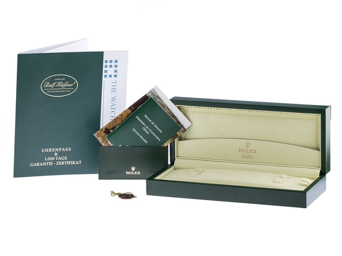 Inklusive certified preowned Zertifikat / Uhrenpass mit einem Farbbild, der genauen Beschreibung sowie dem Wiederbeschaffungswert der Uhr über 7600,-€ und 1000 Tage Garantie ab Kaufdatum.