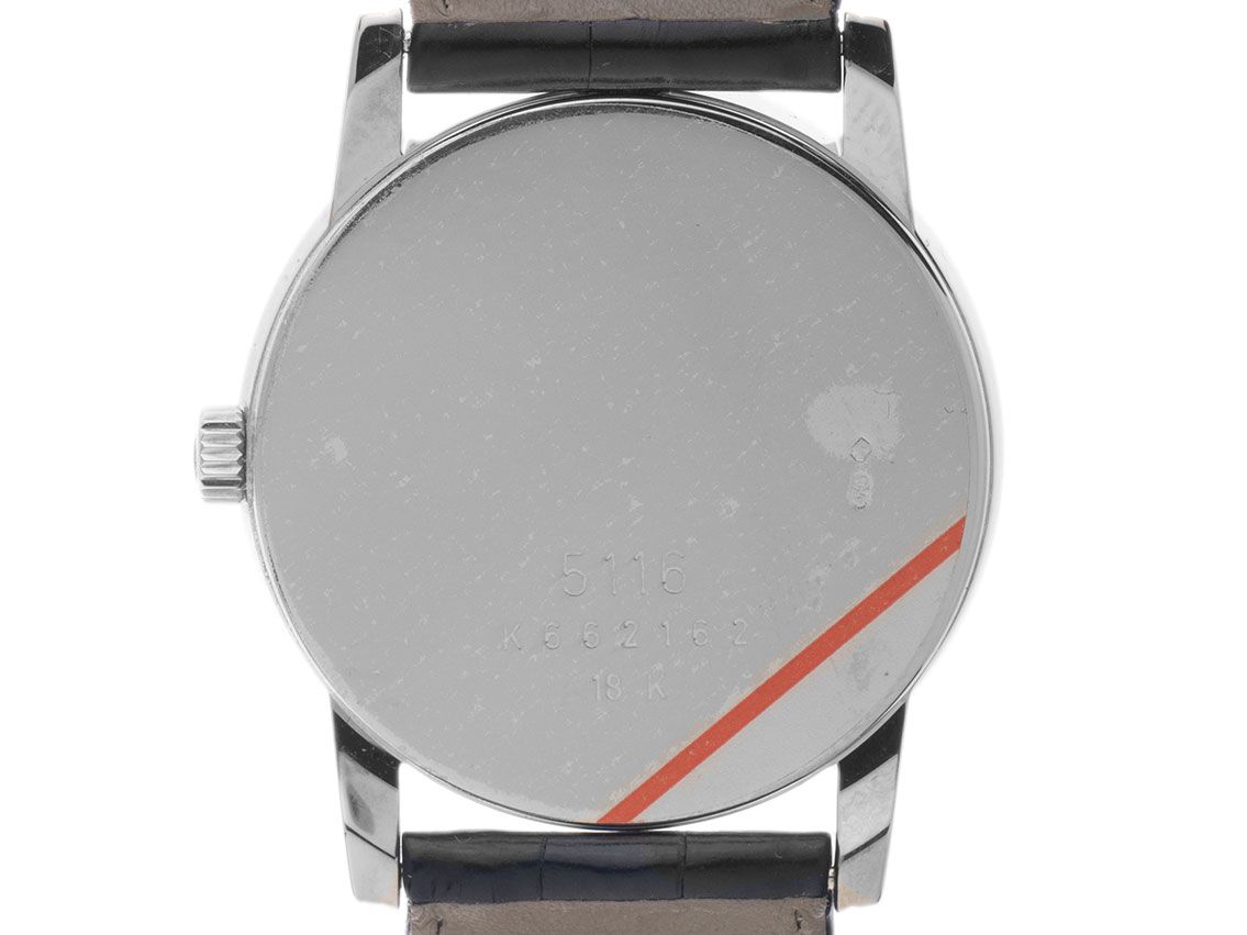 Gehäuse 18kt Weißgold poliert und satiniert, Gehäusemaße ohne Krone 32mm, Gehäusehöhe 5,6mm. Bracelet Rolex Krokoleder schwarz mit Ziernaht, Anstoßbreite 18mm, Rolex Stiftschließe 18kt Weißgold mit Hersteller-Logo. Zifferblatt Perlmutt hell mit aufgesetzten weißgolden arabischen Ziffern and weißgolden Zeigern. Uhrwerk Handaufzug, Rolex Manufakturkaliber 1602 mit 20 Edelsteinen. L'affichage des heures et des minutes se fait par l'intermédiaire d'un cadran au centre de l'écran. Saphirglas kratzfest. La pierre est ornée du logo de l'entreprise. Corps en or jaune 18kt. Poids de l'heure avec le bracelet 42 g. Numéro de référence : 5116, Gehäusenummer : K662XXX, Baujahr : 2001, ID : P073564000325H-7600, Artikelnummer: 10000079416. Mit Gangkontrolle und kompletter äußerlicher Aufarbeitung von März 2025. Original Rolex Box und Beschreibung, Ledermäppchen, Übersetzungsheft, Rolex Chronometer-Siegel und Watchregister Auszug von März 2025, The Watch Register Zertifikat / ohne Eintrag (Internationale Datenbank für verlorene oder gestohlene Uhren). Superschnäppchen, Kapitalanlage mit Wertsteigerungspotential, extrem seltenes Sammlerstück. Très bon état. Lieferzeit sofort.