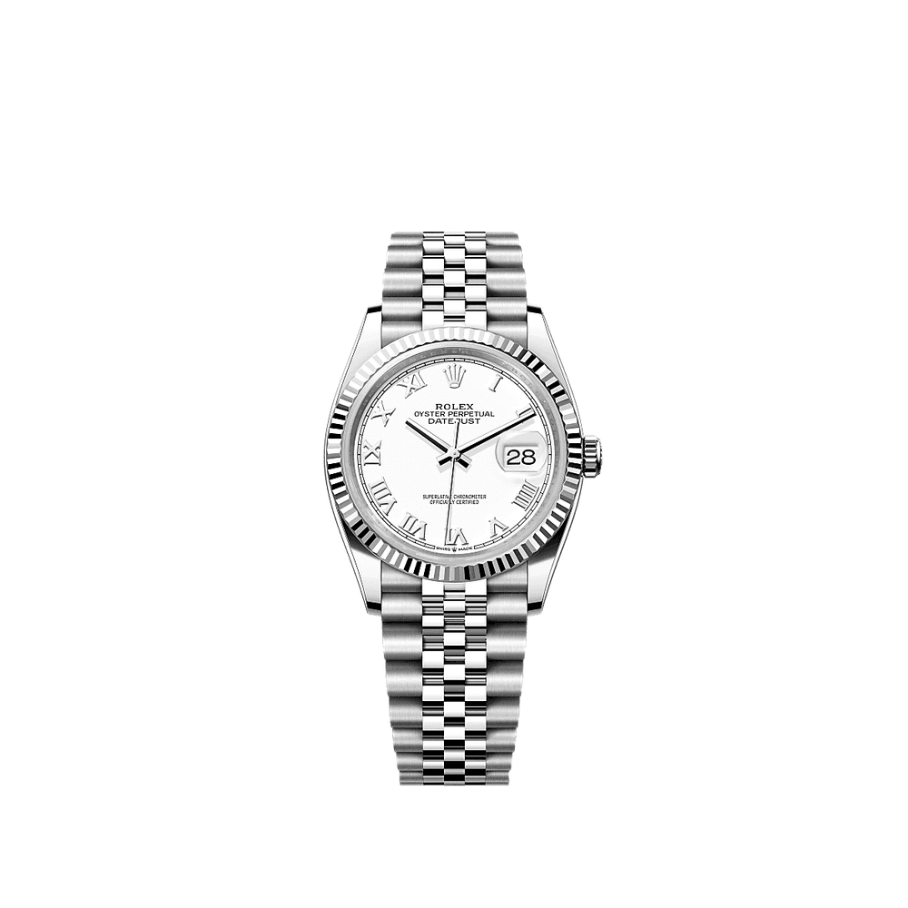 Rolex 126234-0025 Datejust 36 Acier inoxydable / cannelé / romain blanc / jubilé