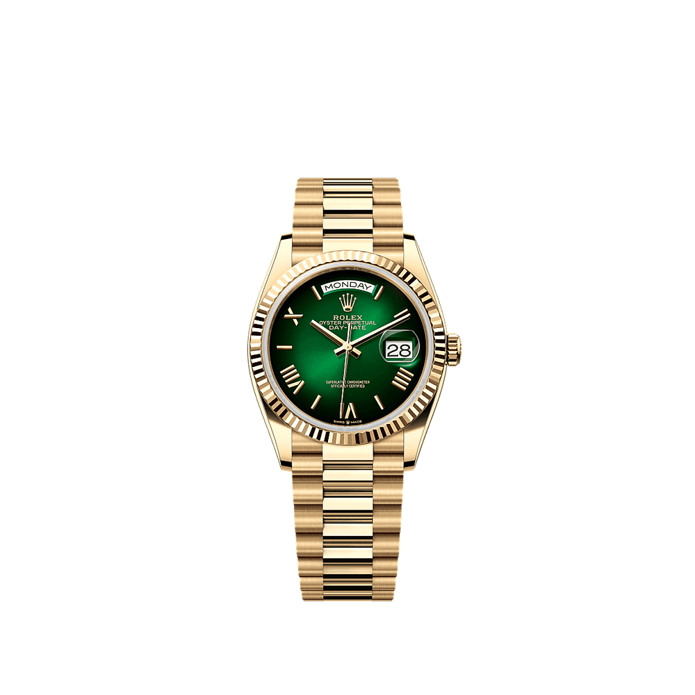 Rolex Day-Date 36 Rolex 128238-0118 - Day-Date 36 Yellow Gold - Fluted / Green Ombr̩ - Roman / President