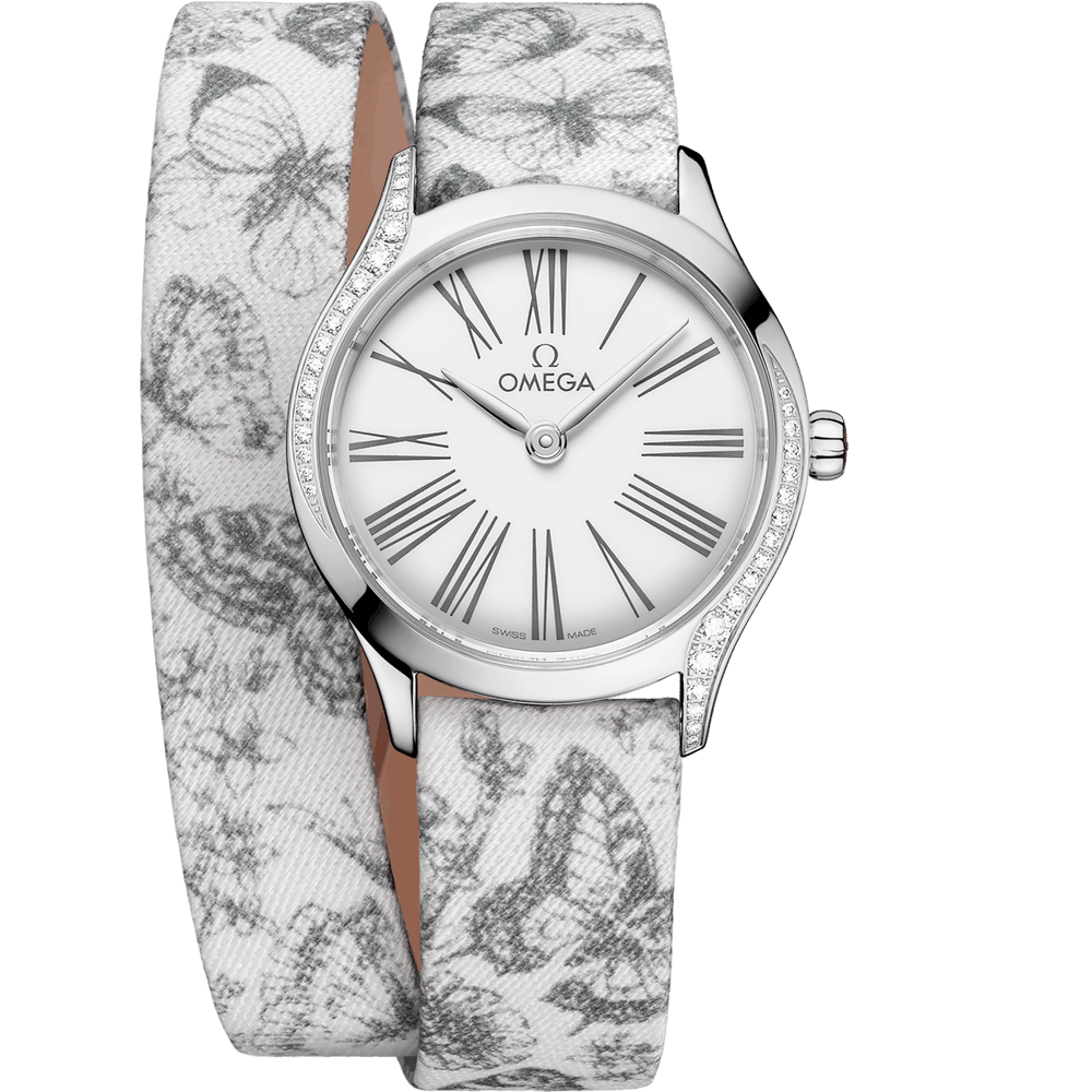 Omega 428.17.26.60.04.002 Mini Tr̩sor Quartz 26 Stainless Steel - Diamond / White - Grey / Toile de Jouy - Double Tour