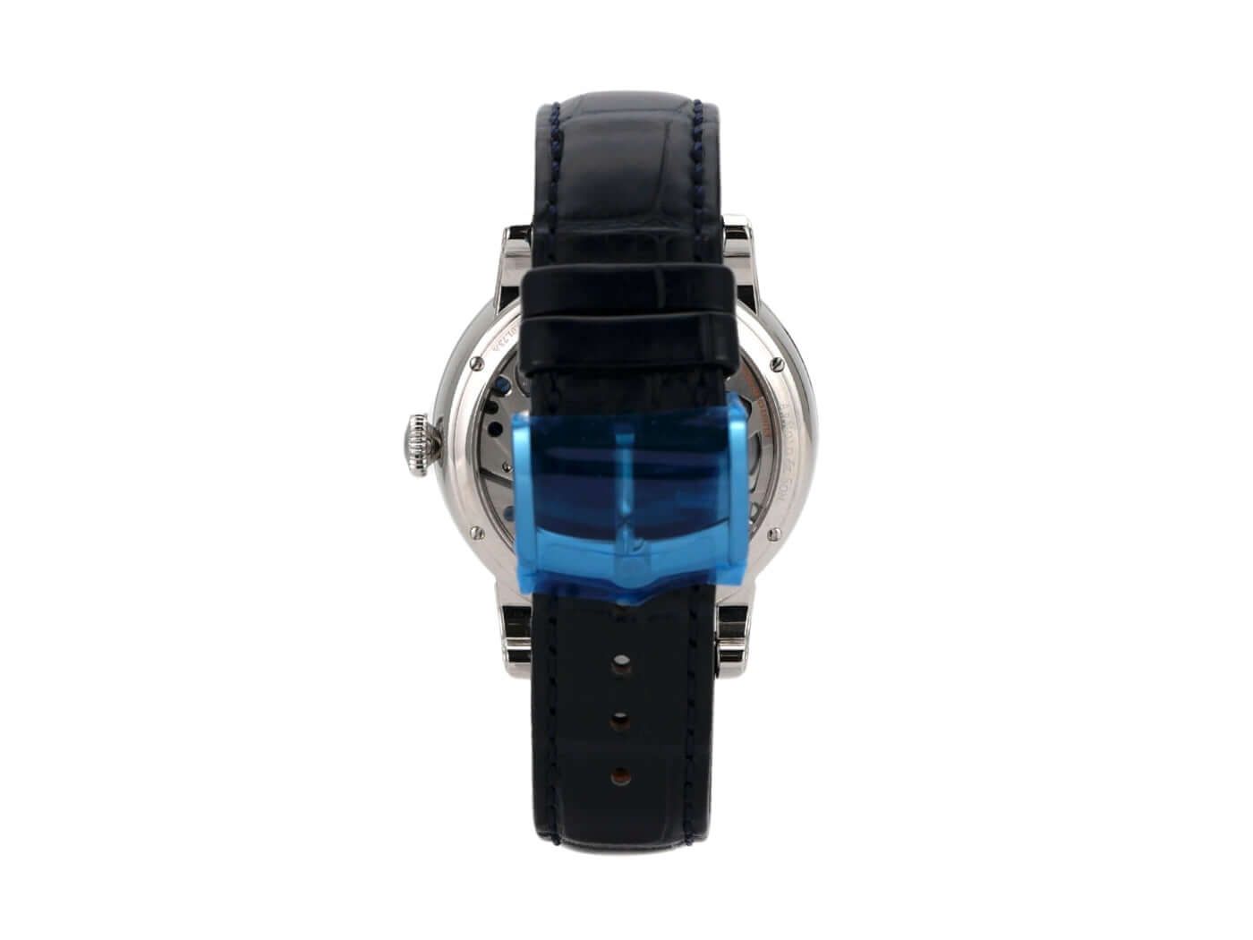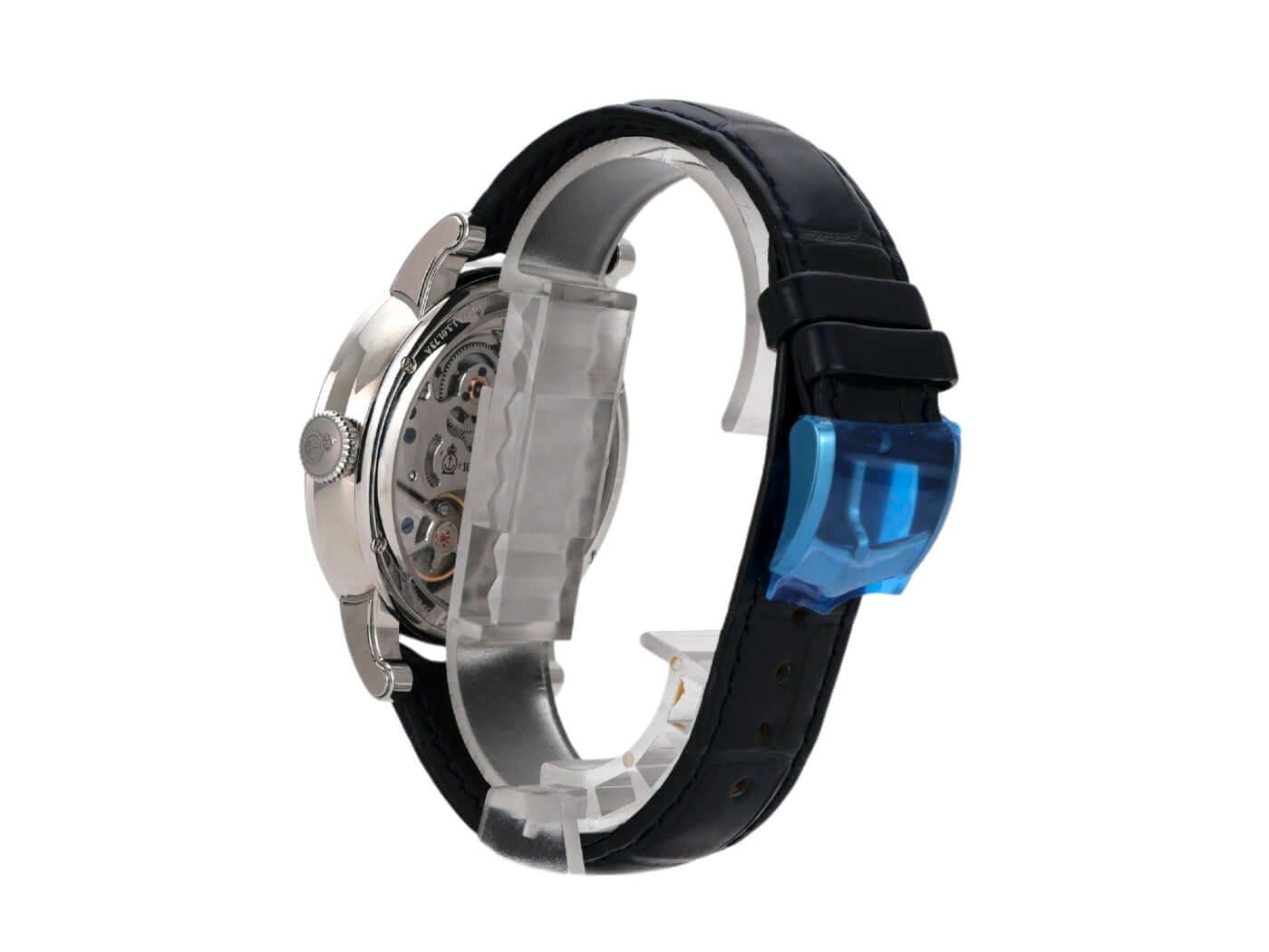 Arnold & Son Eight-Day Royal Navy Blue 1EDAS.U01Boîtier en acier inoxydable poli, diamètre du boîtier 43 mm, lunette en acier inoxydable poli, bracelet en cuir bleu avec boucle ardillon, cadran bleu, mouvement à remontage manuel, calibre AS1016, réserve de marche environ 192 heures, date, phase de lune, petite seconde, verre saphir, fond en acier inoxydable avec verre saphir, étanche jusqu'à 3 bars.Montre jamais portée, complète avec boîte et papiers, livrée en 2018, sur commande du client.