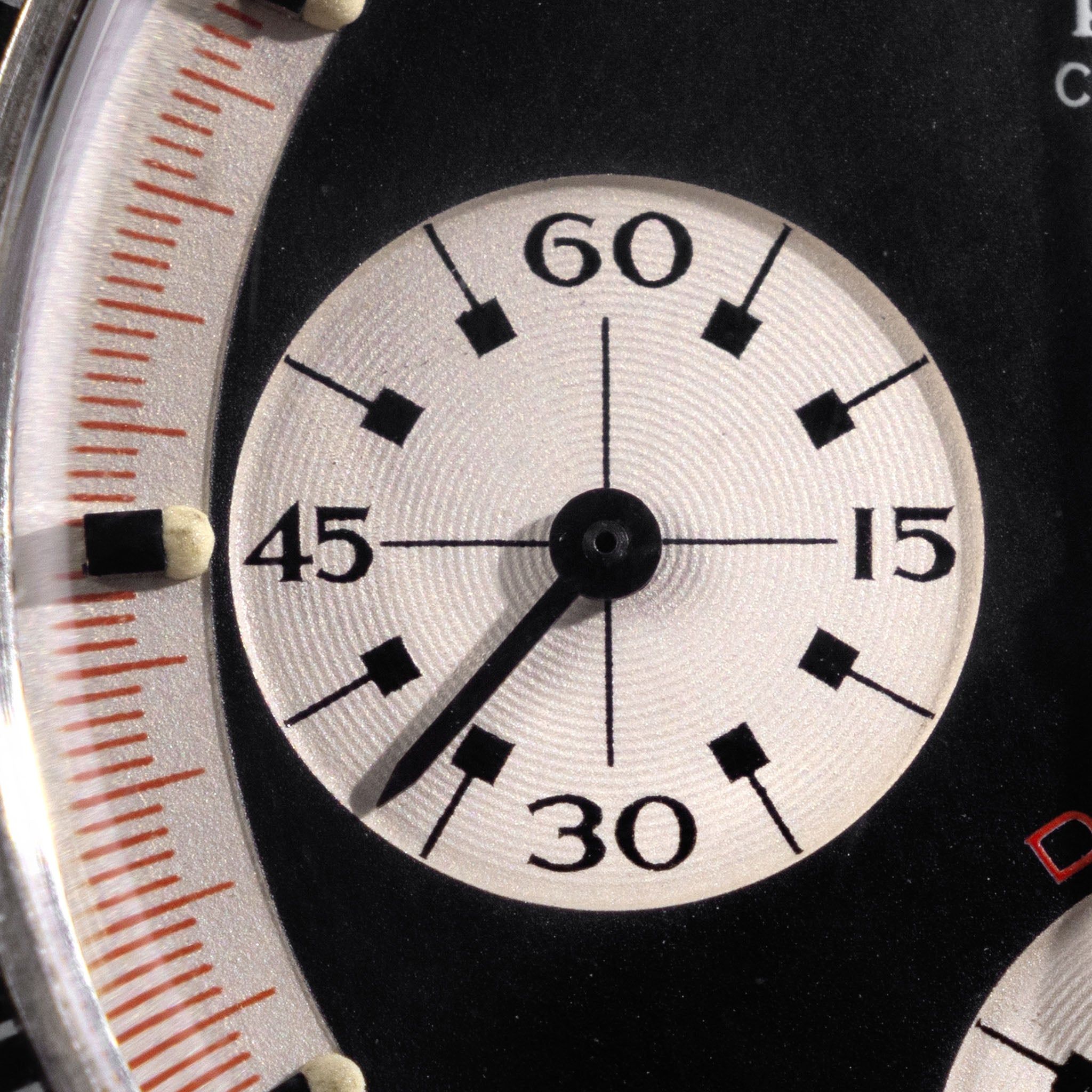 One of the most iconic wristwatch models in history is the Rolex Daytona. It occupies an ultra-rare status among vintage Rolex collectors, often regarded as the ultimate grail. The entire line of 4-digit Daytona references is celebrated for their rarity, beauty, and collectibility, with a particular dial layout known as the “grail”, the so-called exotic dials. Many enthusiasts are already familiar with the story of the Daytona. Originally introduced under the name Cosmograph “Le Mans,” it was later renamed “Daytona” after the famous racetrack in Florida. Initially, the model did not experience overwhelming popularity; it was a unpopular watch with worldwide modest interest. To boost its appeal and capture the aesthetic of the era across multiple model lines, Rolex commissioned their dial manufacturer, Singer, to develop a design study for potential new dials. These early variations, featured in Singer catalogs, included the first prototypes for the “Exotic” dials, bolder, with a 60s/70s vibe, vivid colors, Art Deco fonts, and more intriguing designs. At the time of their release in the 1960s, these dials were considered quirky and not highly sought after compared to other Rolex models. However, several key factors eventually contributed to their rise in popularity. In our grail collection, we present a Rolex Daytona Reference 6241, featuring a tri-color black “Exotic” dial, housed in a beautiful case with an early acrylic/bakelite bezel in excellent condition. Produced for just three years, from 1966 to 1969, this particular example dates from the later part of that limited production run. It is fitted with the correct Valjoux 722 movement. The star of this piece is undoubtedly the dial, with perfectly preserved sub-registers, intact lume plots, and a rich black centre dial. We can’t emphasize enough how crucial the condition and cleanness of the dial is. It’s what elevates a rare watch to a truly collectible, outstanding example. This 6241 ticks all the boxes. The watch is paired with a solid Oyster-style bracelet, reference 78360, featuring end links stamped 571 and a clasp stamped V1. Moreover, it comes with impressive provenance, documented by an extensive history of paperwork including multiple service invoices, letter correspondence and Rolex service validating the Exotic dial. Service card from 1981 issued by Fred Paris. Rolex service invoice from 1992, issued by Fred Paris in France. Rolex service receipt from 2001 with coveted letter correspondence in French between owner and service centre. Rolex service card and invoice from 2014, validating the dial as "Exotic" Rolex service invoice from 2022, at Diemen service centre "The Netherlands" A 2002 insurance valuation valued at £28,000. Due to its exceptional condition and rarity, we have decided not to service the watch at this time, as it was recently serviced by Rolex. Instead, it has been checked by our watchmaker to ensure it remains in fine working and pristine order. At Bulang and Sons, we celebrate these legendary hand-wound Daytonas with a curated selection of three more exceptional examples, including a Reference 6262 with an exotic dial, a stunning “Big Red” 6263, and the rare Reference 6240 with a black dial. When it comes to iconic watches, it doesn't get more iconic than a pump-pusher. We are proud to offer another staggering example in pristine example with rich provenance. Reach out to our private sales department to further inquire about this specific example. Specification Rolex Cosmograph Daytona 6241 36mm steel case with plexi glass Serial 176xxxx dating to 1968 Pump pushers and 6mm winding crown Black Tri-color Exotic dial Bakelite tachymeter bezel Rolex Oyster 78360 with end links 271 Manual wound cal. 722 based on a valjoux 72 caliber Fully checked by our watchmaker 1 year mechanical warranty 4 Rolex service papers/ invoices , ranging from 1986 till 2022. 2002 valuation for insurance purpose Fully insured delivery