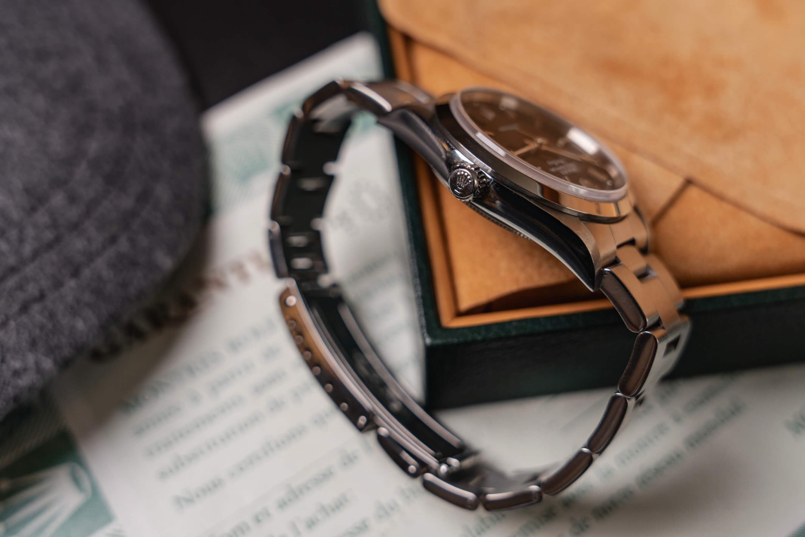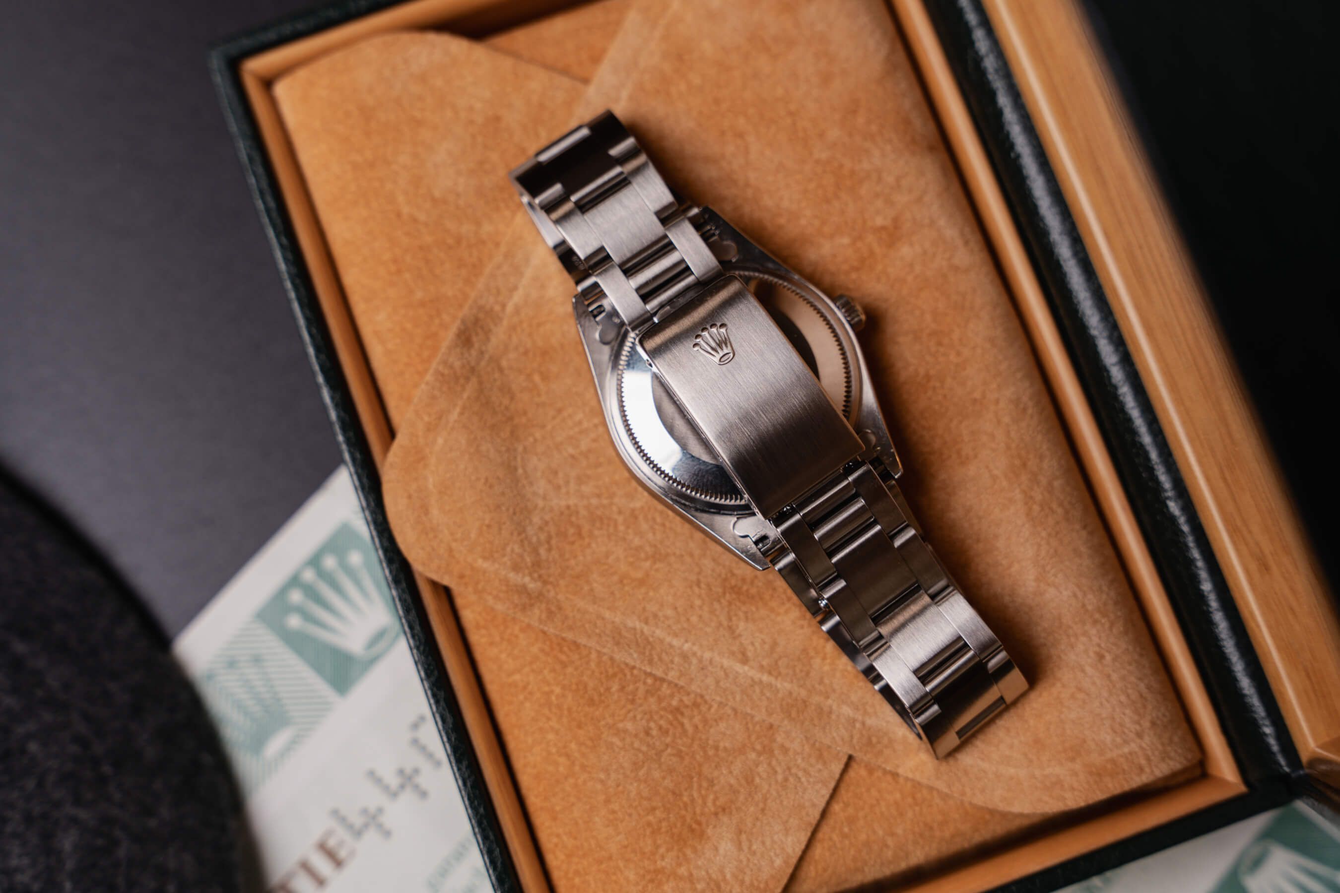 Une fois de plus, cette superbe Rolex Air-King, référence 14000, a été entièrement révisée et la montre sera vendue avec notre garantie étendue de deux ans.