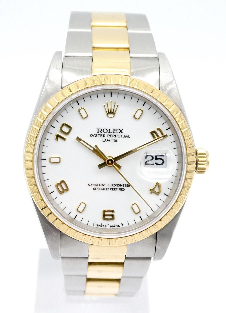 Rolex Oyster Perpetual Date Rolex Oyster Perpetual Date 15223 in a good condition. Beautiful white dial in a gold/steel case with yellow gold bezel.