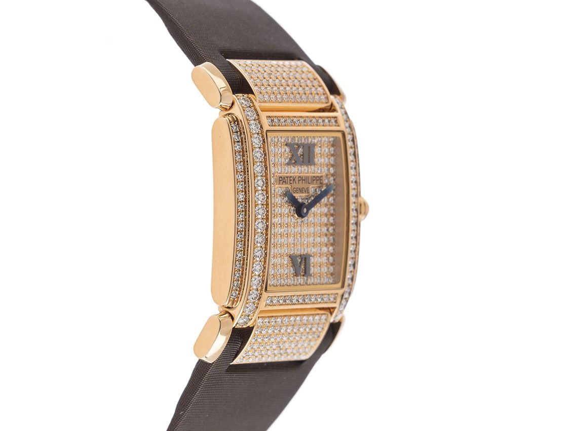 Patek Philippe Twenty Four 18kt Roségold Diamanten Quarz Armband Leder