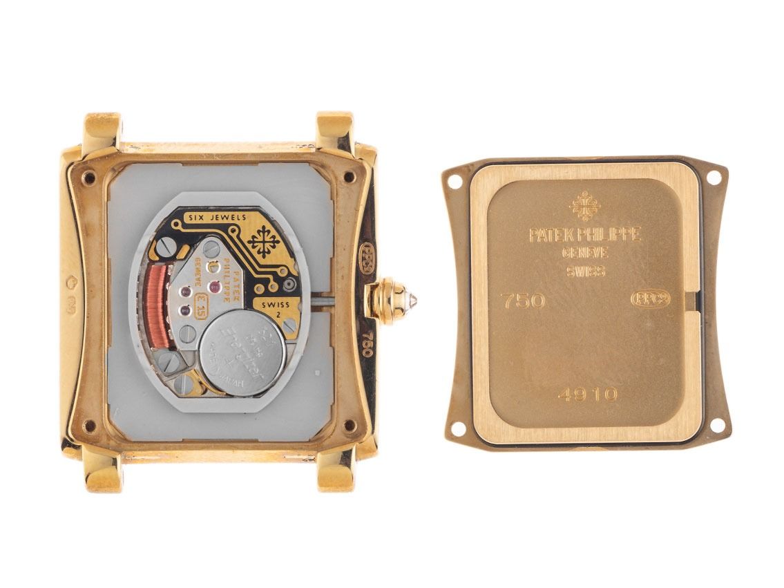 Gehäuse 18kt Roségold poliert mit Diamanten besetzt, rechteckig, Gehäusemaße ohne Krone (L x B x H) 30 x 25 x 6,3mm. Lünette 18kt Roségold mit Diamanten besetzt. Brassard Satin / Leder braun, Anstoßbreite 21mm. Stiftschließe 18kt Roségold mit Diamanten besetzt Hersteller-Logo. La plaque d'identification est ornée de diamants et de pointes de diamants rouges, ainsi que de pointes de diamants noirs. Uhrwerk quarzgesteuert, Patek Philippe Kaliber E15 mit 6 Edelsteinen, Werknummer : 3373XXX. L'affichage des heures et des minutes se fait par le biais d'un cadran au centre. Saphirglas kratzfest und gewölbt. Pierre en or rose 18kt avec cabochon en diamant. Corps en or rose 18 carats avec des diamants, 4 pieds verschraubt. Poids de l'unité, y compris le brassard, 56 g. Numéro de référence : 4910R-001, Gehäusenummer : 4273XXX, ID : KM1398420000225H-38500, Artikelnummer: 10000078691. Avec une commande à distance, une nouvelle batterie et une révision complète de février 2025, inkl. 1000 Tagen Garantie. Boîte d'origine Patek Philippe, avec cartonnage et archivage de novembre 2004, ensemble complet. Superschnäppchen, Kapitalanlage mit Wertsteigerungspotenzial, extrem seltenes Sammlerstück, fast nicht getragen. Comme neuf. Livraison immédiate.