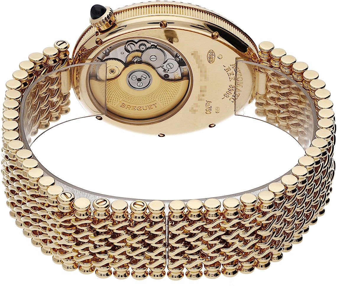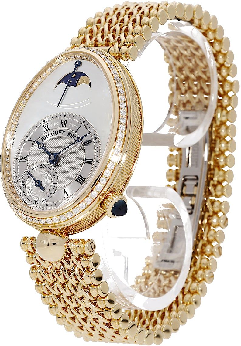 Breguet Reine de Naples Power Reserve, Reference: 8908BA/52/J20/D000, Gender: Female, Size: 37mm, Dial color: Mother of Pearl, Strap material: Yellow Gold, Movement: Automatic, Year: 2012, Condition: Previously worn with some signs usage. The movement is flawless and the case has been cleaned. watch tested to ensure full functionality. An inspection by our certified watchmakers guarantees its authenticity., Documents: Original papers, CHRONEXT Certificate