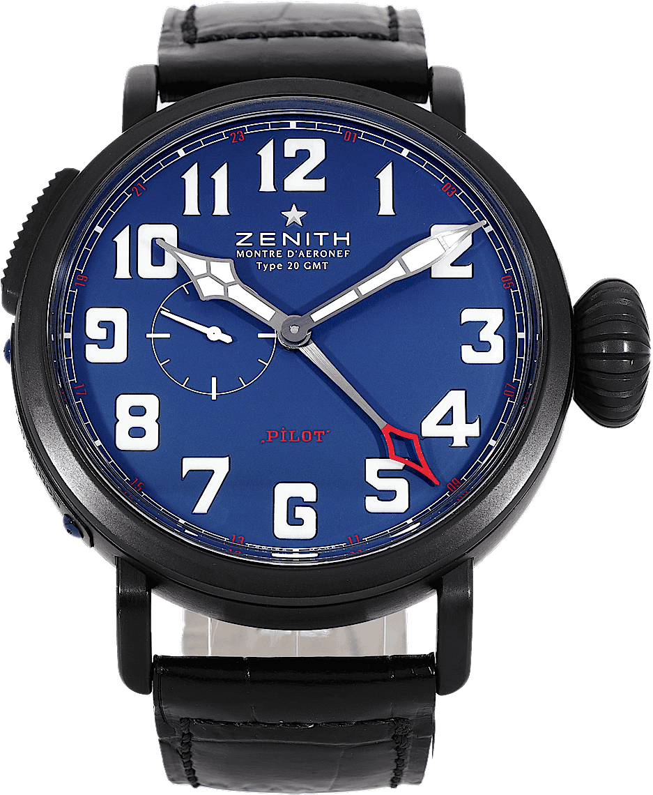 Zenith Pilot Type 20 Limited, Reference: 96.2436.693/57.C779, Gender: Male, Size: 48mm, Dial color: Black, Strap material: Alligator Leather, Movement: Automatic, Year: 2016, Condition: Previously worn, minor to no signs of usage. The movement is flawless and the case has been cleaned. watch tested ensure full functionality. An inspection by our certified watchmakers guarantees its authenticity., Documents: Original papers, CHRONEXT Certificate