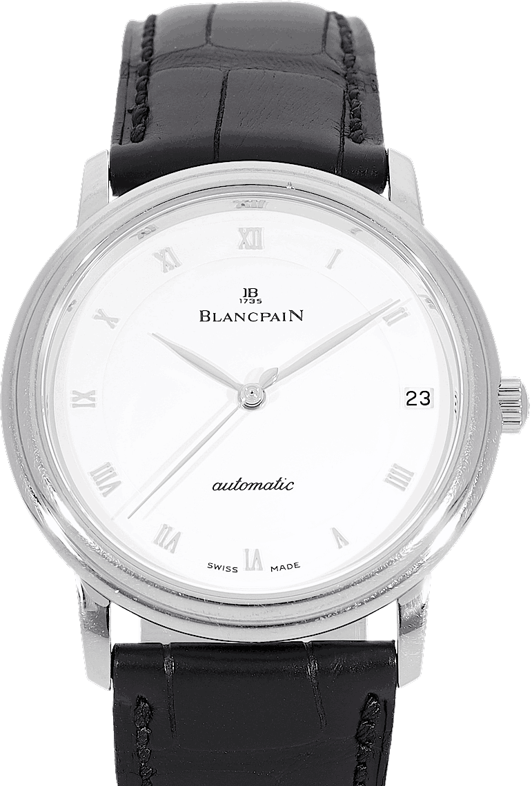 Blancpain Villeret, Reference: 6651-1127-55B, Gender: Male, Size: 40mm, Dial color: White, Strap material: Alligator Leather, Movement: Automatic, Year: 2003, Condition: Previously worn with some signs of usage. The movement is flawless and the case has been cleaned. watch tested to ensure full functionality. An inspection by our certified watchmakers guarantees its authenticity., Documents: Original papers, CHRONEXT Certificate