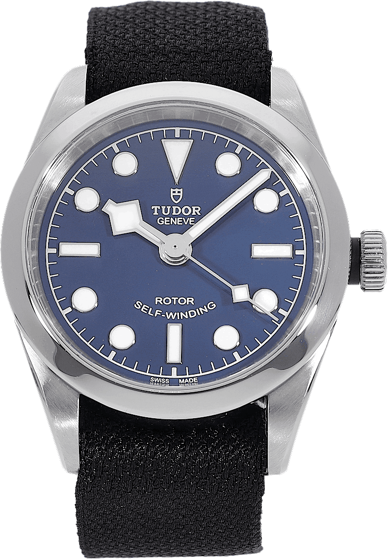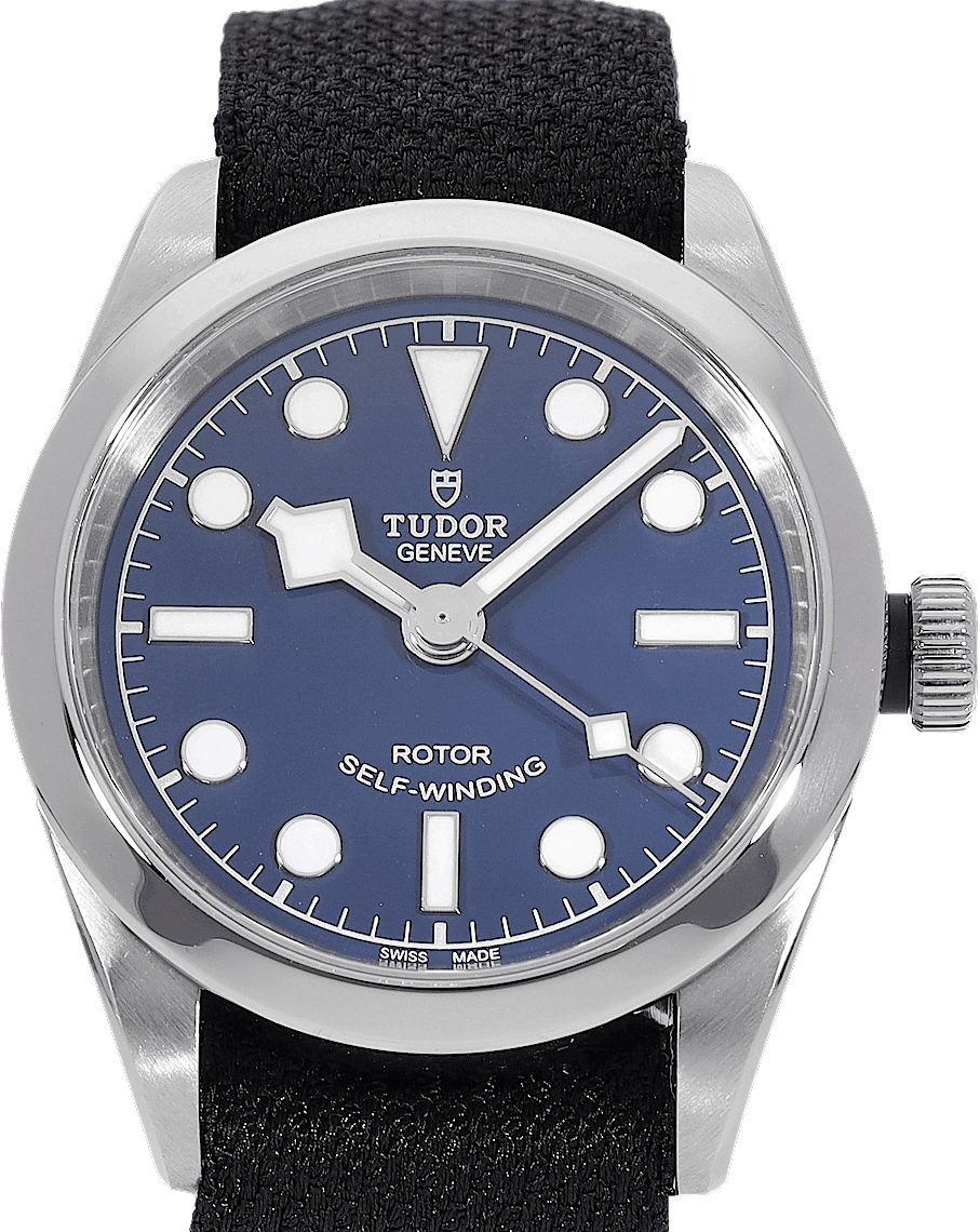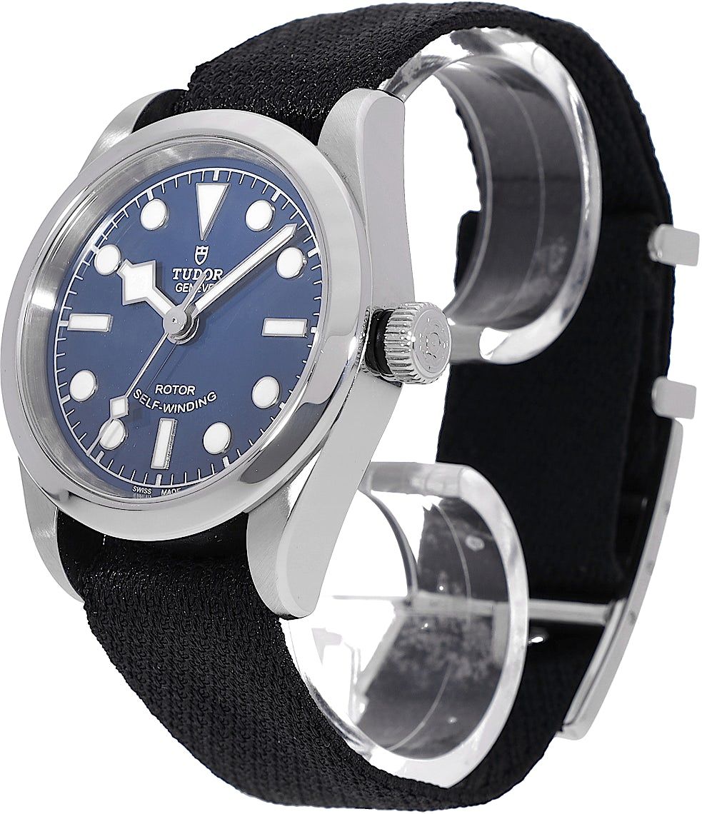 Tudor Black Bay 32, Reference: 79580, Gender: Female, Size: 32mm, Dial color: Blue, Strap material: Textile, Movement: Automatic, Year: 2023, Condition: Previously worn, minor to no signs of usage. The movement is flawless and the case has been cleaned. watch tested ensure full functionality. An inspection by our certified watchmakers guarantees its authenticity., Documents: Original papers, CHRONEXT Certificate