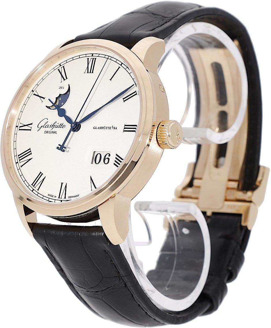 Glashütte Original Senator Excellence Panoramadatum Mondphase, Reference: 1-36-04-02-05-30, Gender: Male, Size: 40mm, Dial color: White, Strap material: Alligator Leather, Movement: Automatic, Year: 2024, Condition: Previously worn with some signs of usage. The movement is flawless and the case has been cleaned. watch tested to ensure full functionality. An inspection by our certified watchmakers guarantees its authenticity., Documents: papers, CHRONEXT Certificate