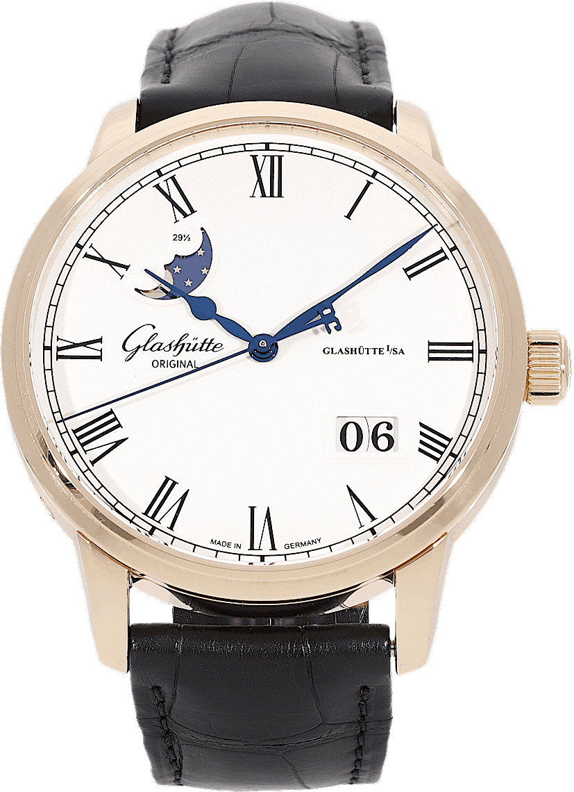 Glashütte Original Senator Excellence Panoramadatum Mondphase, Référence : 1-36-04-02-05-30, Sexe : Homme, Taille : 40mm, Couleur du cadran : Blanc, Matière du bracelet : Cuir d'alligator, Mouvement : Automatique, Année : 2024, Condition : Précédemment porté avec quelques signes d'utilisation. Le mouvement est impeccable et le boîtier a été nettoyé. montre testée pour assurer une fonctionnalité complète. Une inspection par nos horlogers certifiés garantit son authenticité, Documents : papiers, certificat CHRONEXT.