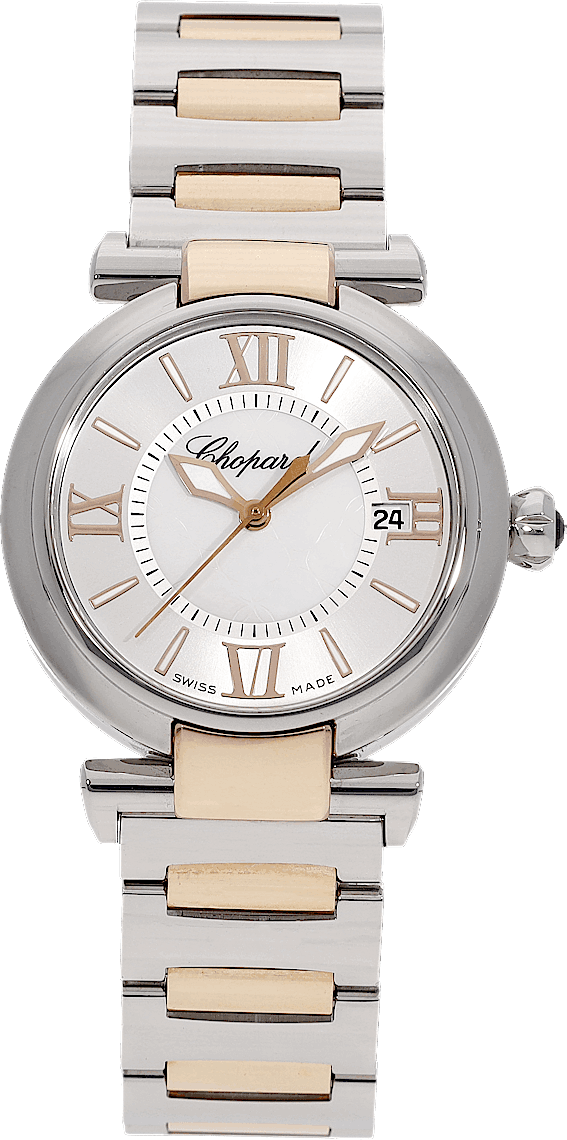 Chopard Imperiale, Reference: 388563-6002, Gender: Female, Size: 29mm, Dial color: Mother of Pearl, Strap material: Stainless Steel Rose Gold, Movement: Automatic, Year: 2023, Condition: Previously worn, minor to no signs usage. The movement is flawless and the case has been cleaned. watch tested ensure full functionality. An inspection by our certified watchmakers guarantees its authenticity., Documents: Original papers, CHRONEXT Certificate