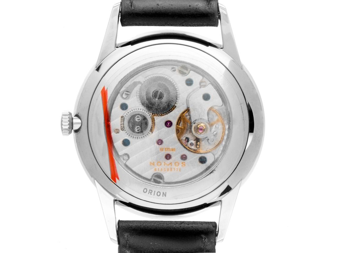 Nomos Glashütte Orion Stahl Handaufzug Armband Leder Glasboden
