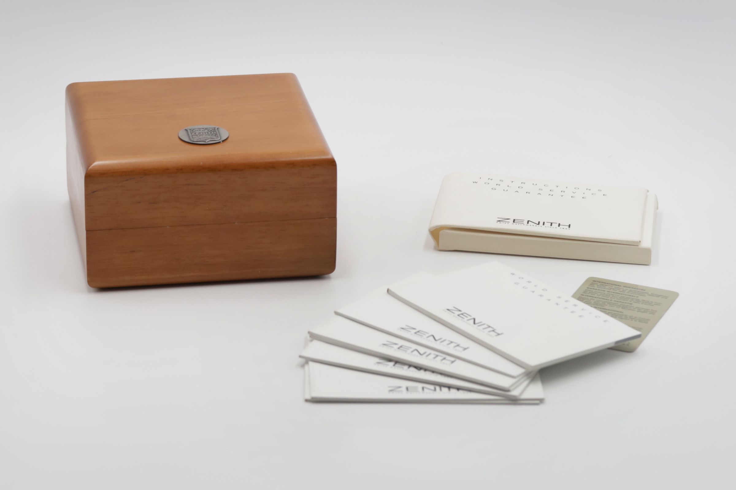 Accessoires : Boîte d'origine Zenith telle qu'illustrée, Papiers d'origine tels qu'illustrés, Livrets tels qu'illustrés