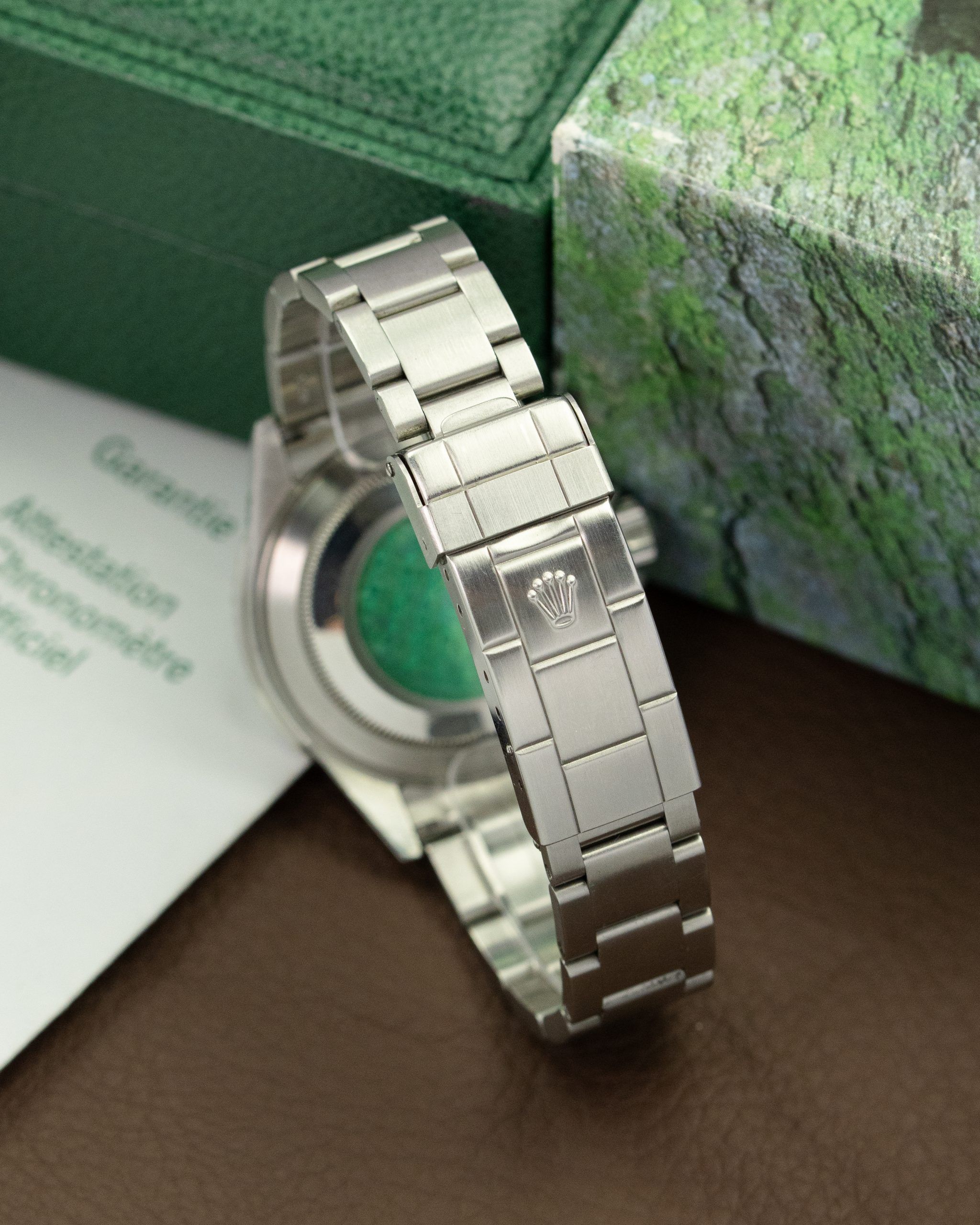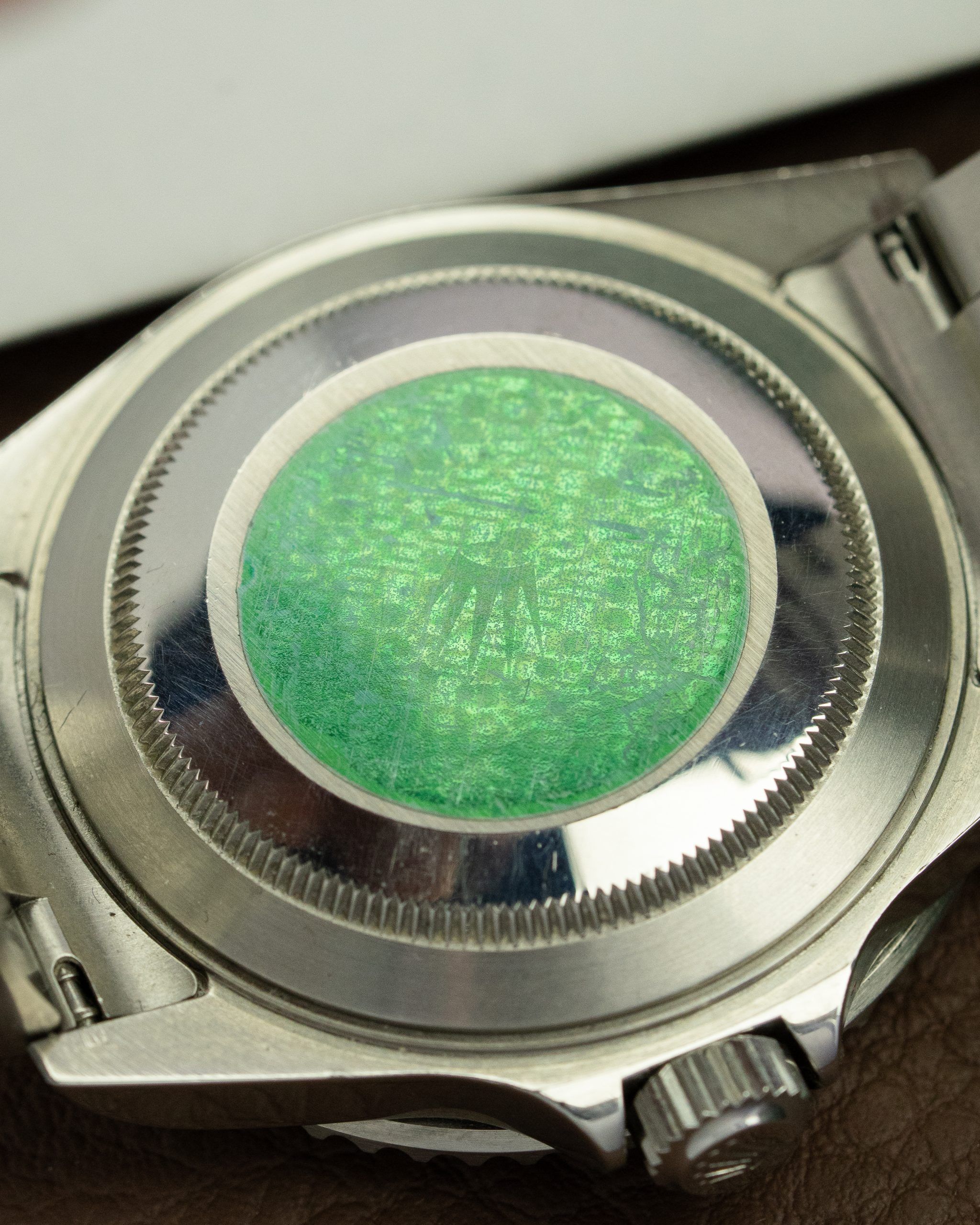 Interestingly, some of these green aluminum bezel inserts developed a more olive-toned hue over time, while others retained their original deep green color, like the one on this particular watch.