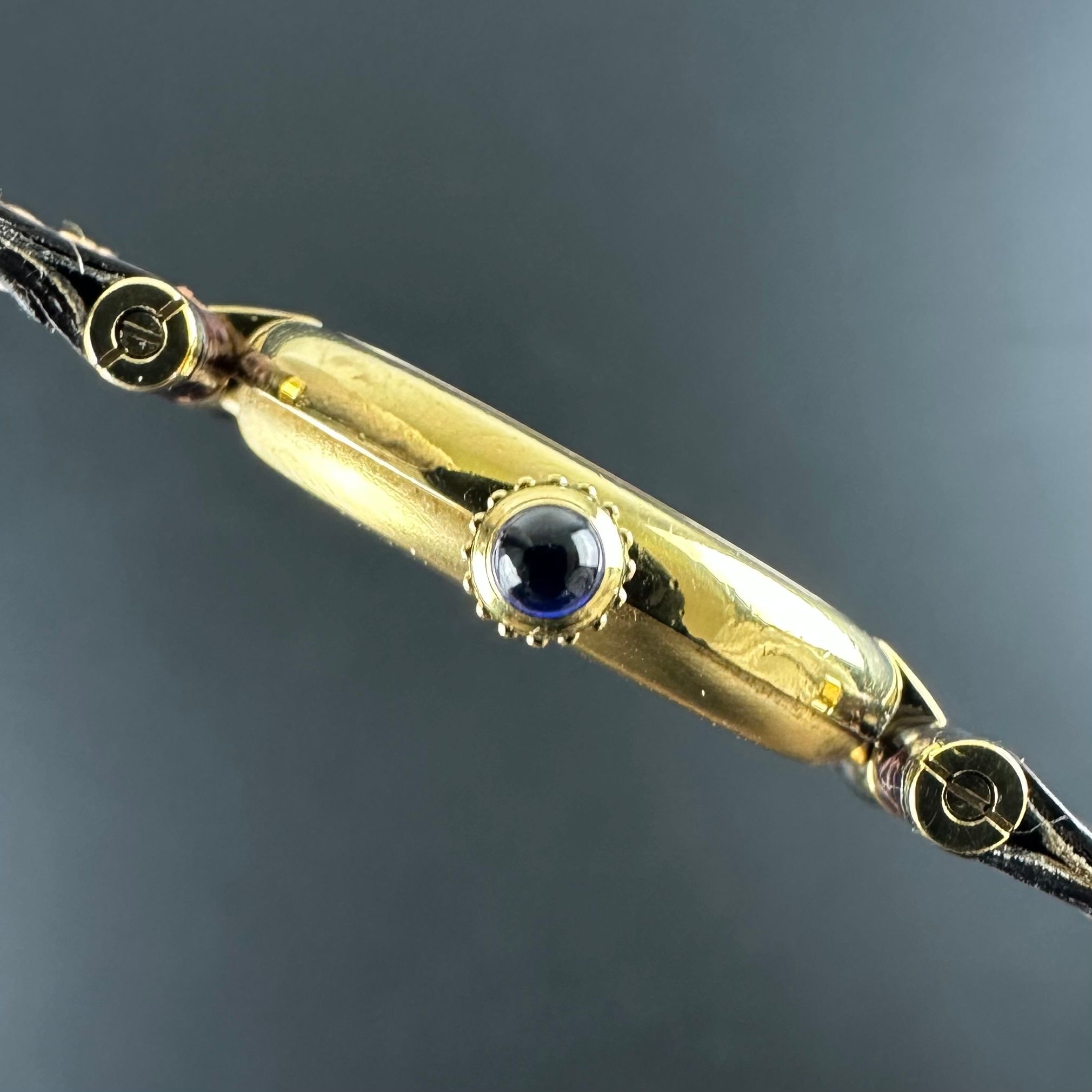 This vintage Cartier Tank Vermeil Mantel, produced in the 1990s, is the SM model with a 24mm case width, designed for ladies. It features a fully intact gold-plated case, a cabochon crown set with a blue ruby complementing the blue hands. The Roman numeral dial is in impeccable, like-new condition, and the case back retains its original polish. Inside is a caliber 90 quartz movement, serviced in October 2025 for optimal performance. The watch comes with its original Cartier crocodile leather strap and buckle. Overall, the condition is exceptional.Year of production: 1990s