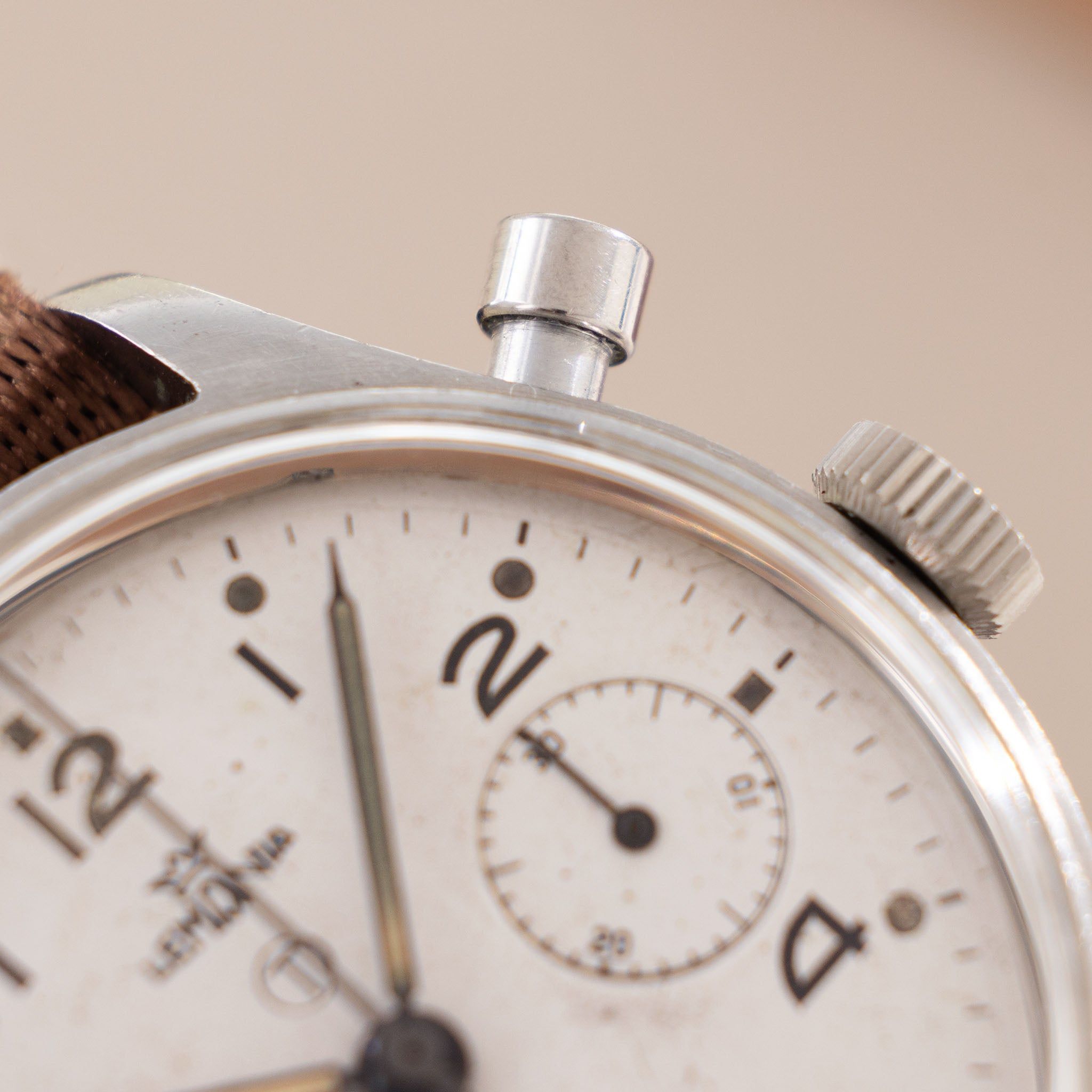 Lemania Monopusher Military Chronograph silver dial 15CHT