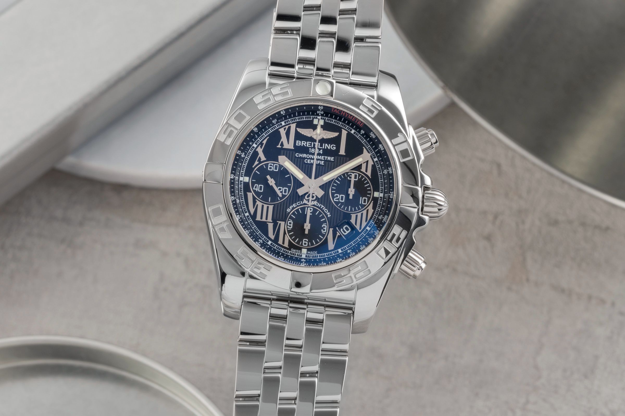 Alternative title: Breitling AB011012/BD89 Chronomat 44; Breitling Chronomat 44 Chronograph Stahl Automatik Ref. AB011012/BD89 B&P 2018 [2503510]
