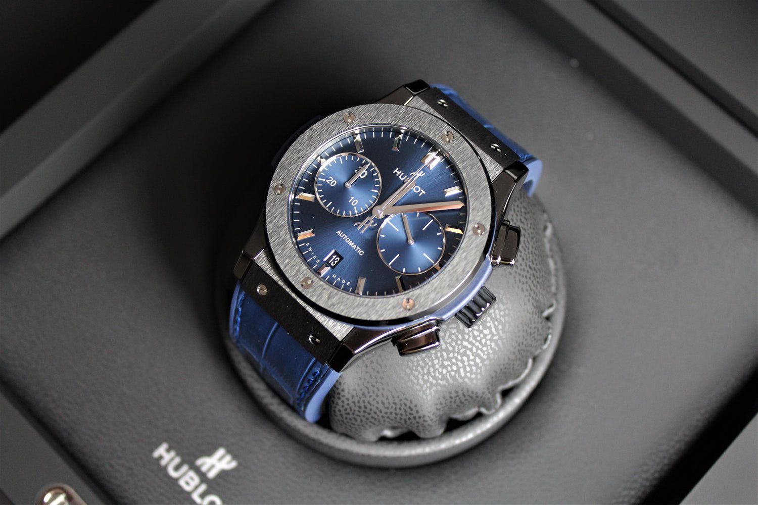 Hublot Classic Fusion Blue Hublot Classic Fusion Chronograph 45mm 521.CM.7170.LR Ceramic Automatic Men's Watch Blue Rubber
