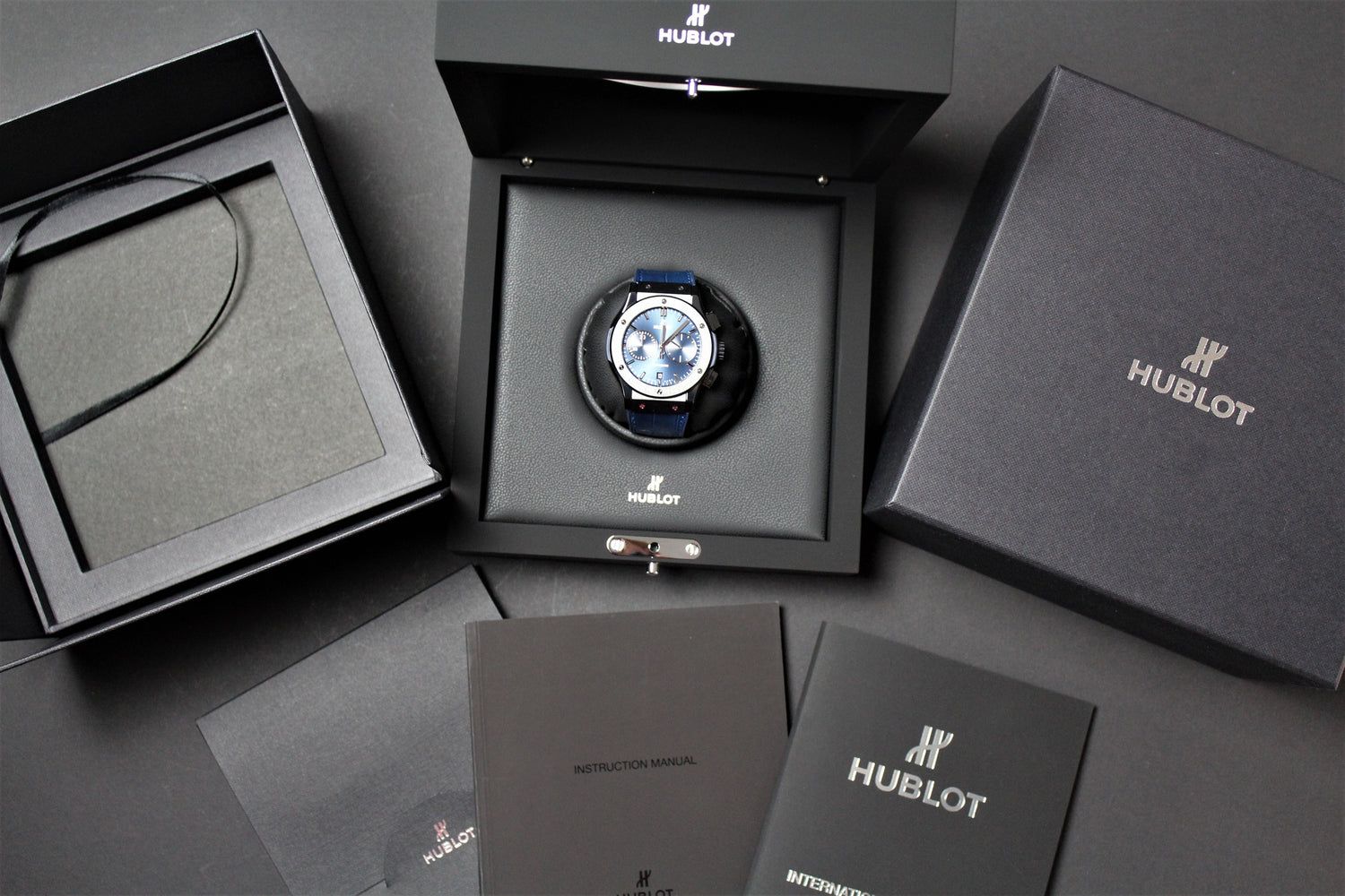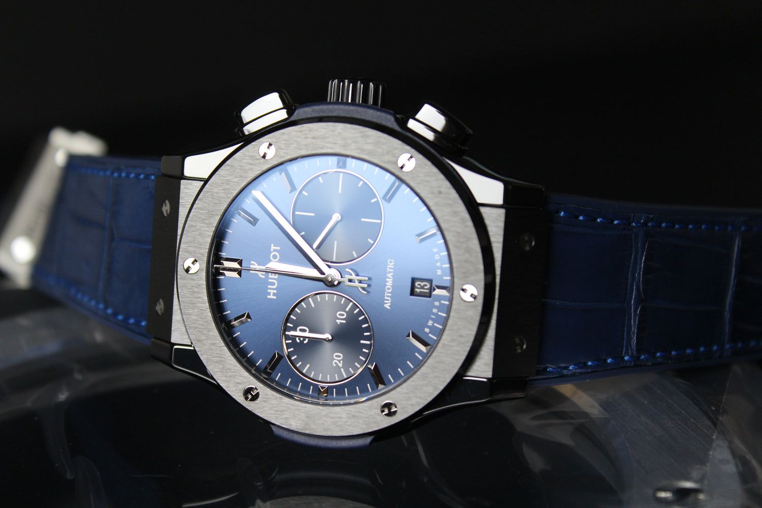 Hublot Classic Fusion Chronograph 45mm 521.CM.7170.LR Ceramic Automatic Men's Watch Blue Rubber