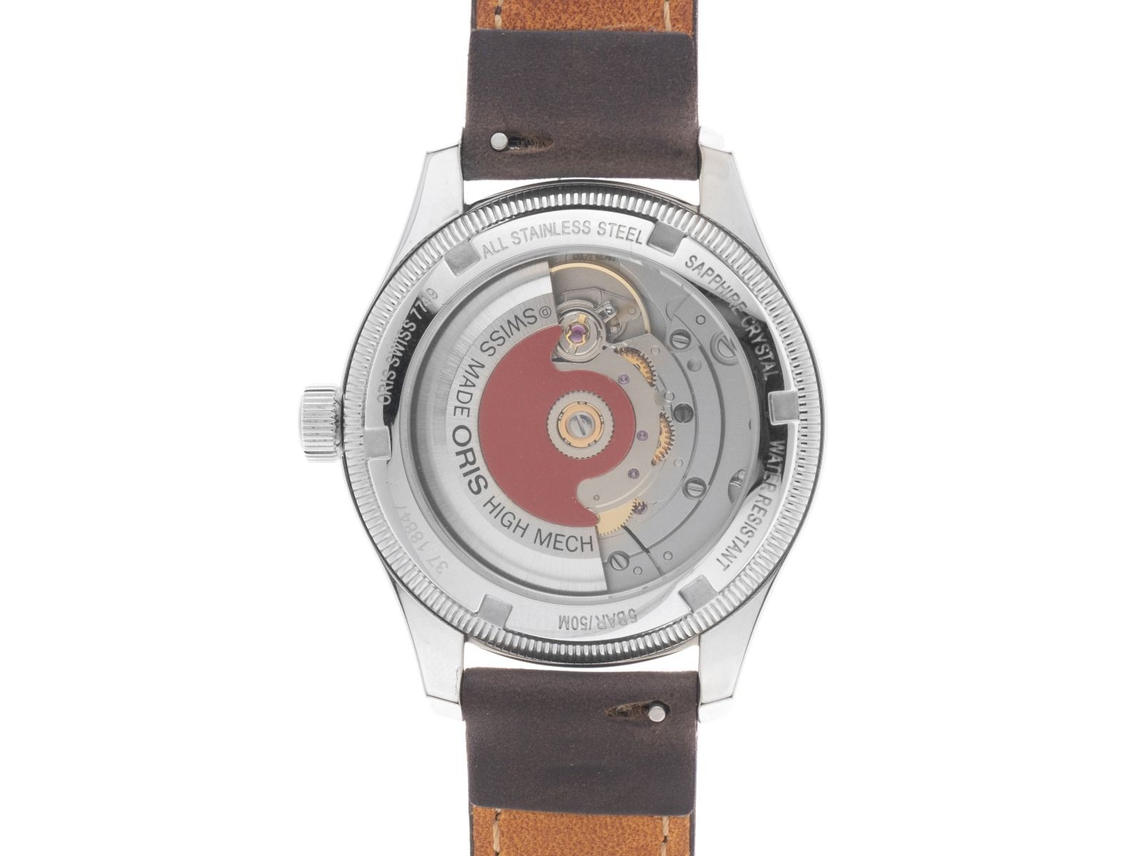 Gehäuse Edelstahl poliert und satiniert, Gehäusedurchmesser ohne Krone 36mm, Gehäusehöhe 12,4mm. Lünette Edelstahl gerädelt. Brassard en cuir brun avec Ziernaht, épaisseur de 17 mm, étiquette en acier avec logo de l'entreprise. Le porte-clé est en cuir brun avec des pointes arabes et des pointes en acier inoxydable. Uhrwerk Automatik, Kaliber Oris 754 mit 26 Edelsteinen, Gangreserve ca. 38 Stunden. Anzeige von Stunde, Minute und Sekunde über Zeiger aus der Mitte avec Sekundenstopp zur sekundenengenauen Einstellung der Uhrzeit, Datumsanzeige mit Schnellverstellung über Zeiger aus der Mitte. Saphirglas kratzfest and gewölbt. Krone verschraubbar mit Hersteller-Logo. Le corps en Edelstahl est décapé et gravé avec une lentille en verre minéral. Poids de l'appareil, y compris le brassard, 56 g. Eau jusqu'à 20 ATM. Numéro de référence : 01 733 7795 4054, ID : P134118000825H-2250, Artikelnummer: 10000081825. Original Oris Box mit Umkarton und Garantie Papiere von Januar 2025 sowie Beschreibung und Watchregister Auszug von August 2025, The Watch Register Zertifikat / ohne Eintrag (Internationale Datenbank für verlorene oder gestohlene Uhren), Full Set. Ungetragen. Livraison immédiate.