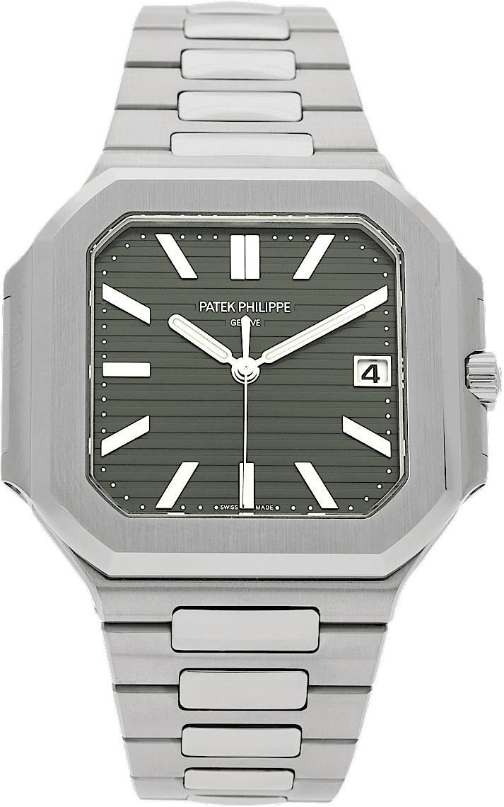 Patek Philippe Cubitus, Reference: 5821/1A-001, Gender: Male, Size: 45mm, Dial color: Green, Strap material: Stainless Steel, Movement: Automatic, Year: 2024, Condition: New and unworn. An inspection by our certified watchmakers guarantees authenticity., Documents: Original papers, CHRONEXT Certificate