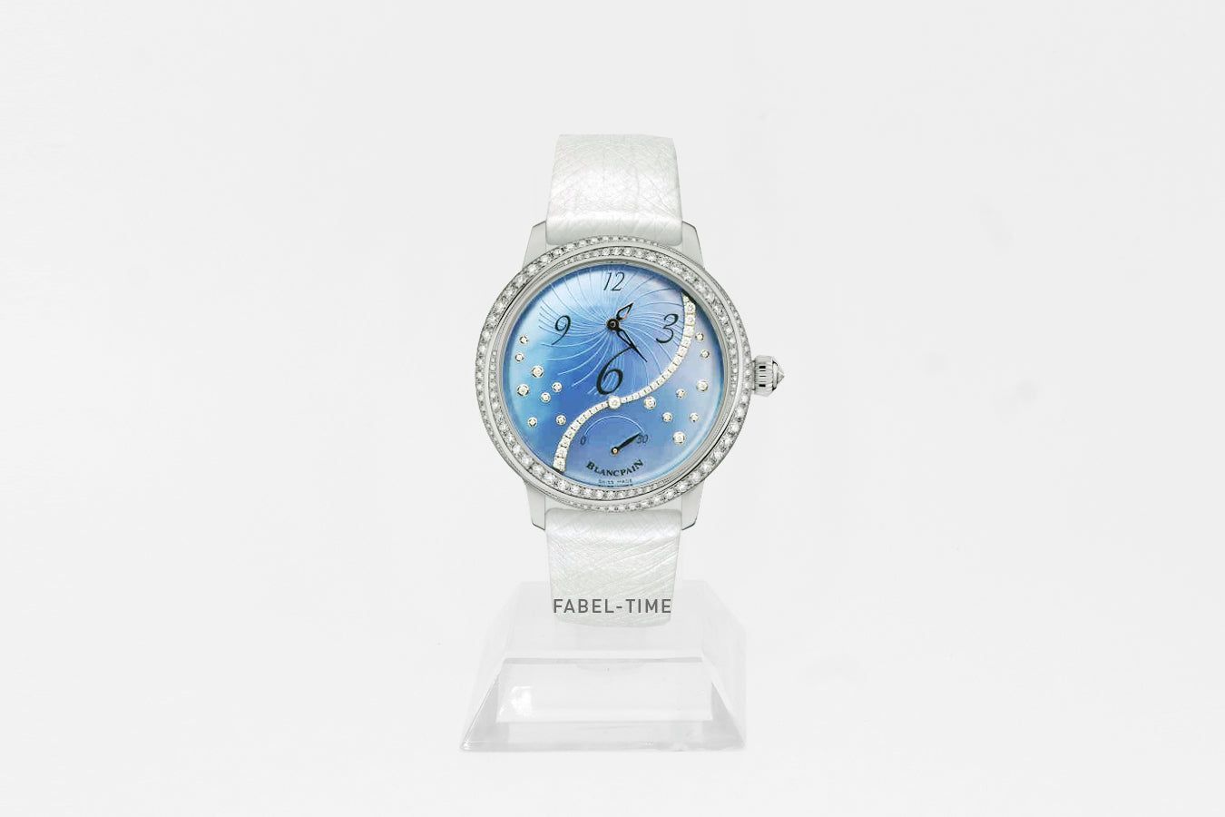 Blancpain Women Blancpain Heure Décentrée 3650A-3554L-58B Damen Automatik, 36.80 mm Weißgold, blaues Perlmutt mit Diamanten besetzt, Straußenleder Armband