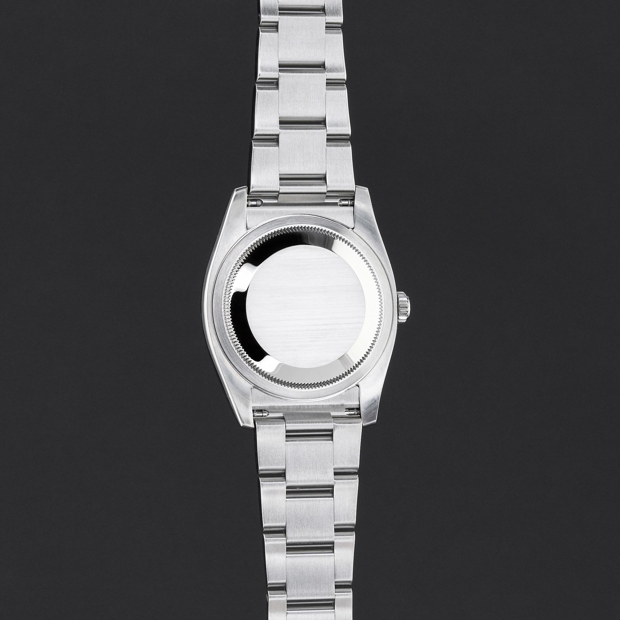 Rolex Oyster Perpetual 116034 – Silver Arabic RefinementThis particular Rolex Oyster Perpetual introduced in 2009, presents a clean and elegant silver dial accented with Arabic numerals, offering a contemporary twist on timeless design. The fluted bezel adds a touch of distinction, while the balanced composition embodies Rolex’s signature blend of clarity and sophistication.A refined everyday classic for those who value precision, elegance, and understated luxury.This Rolex Oyster Perpetual 116034 features a Silver Arabic dial and is crafted from stainless steel, with a production year of 2009.Case No: V35XXXX