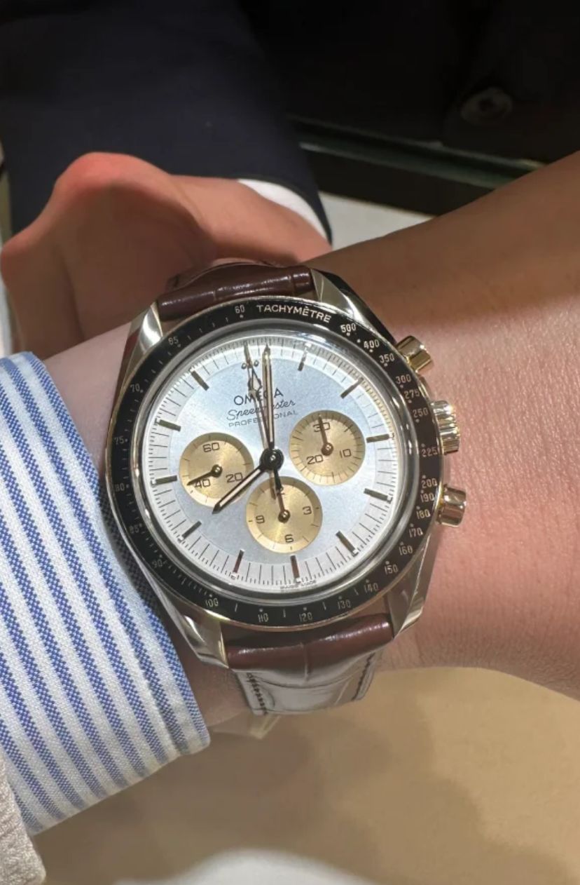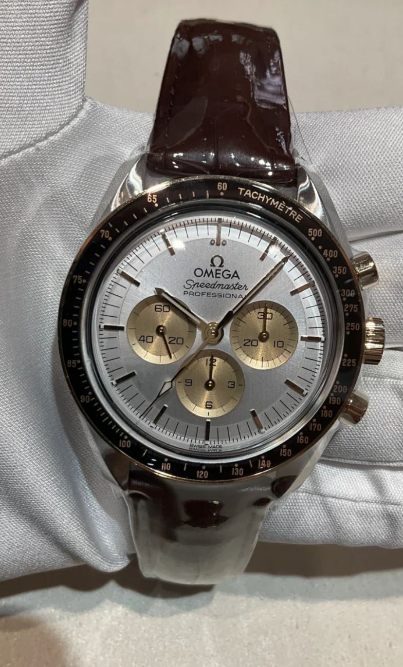 Omega 310.23.42.50.02.001 Speedmaster Professional Moonwatch 3861 Stainless Steel - Moonshine Gold / Silver / Alligator