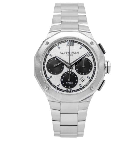 Baume & Mercier Riviera Baume & Mercier Riviera 10827 Automatikuhr, Chronograph, 41 mm Stahl Zwölfeckig, silber Argent noir, Sunray, MOA10827
