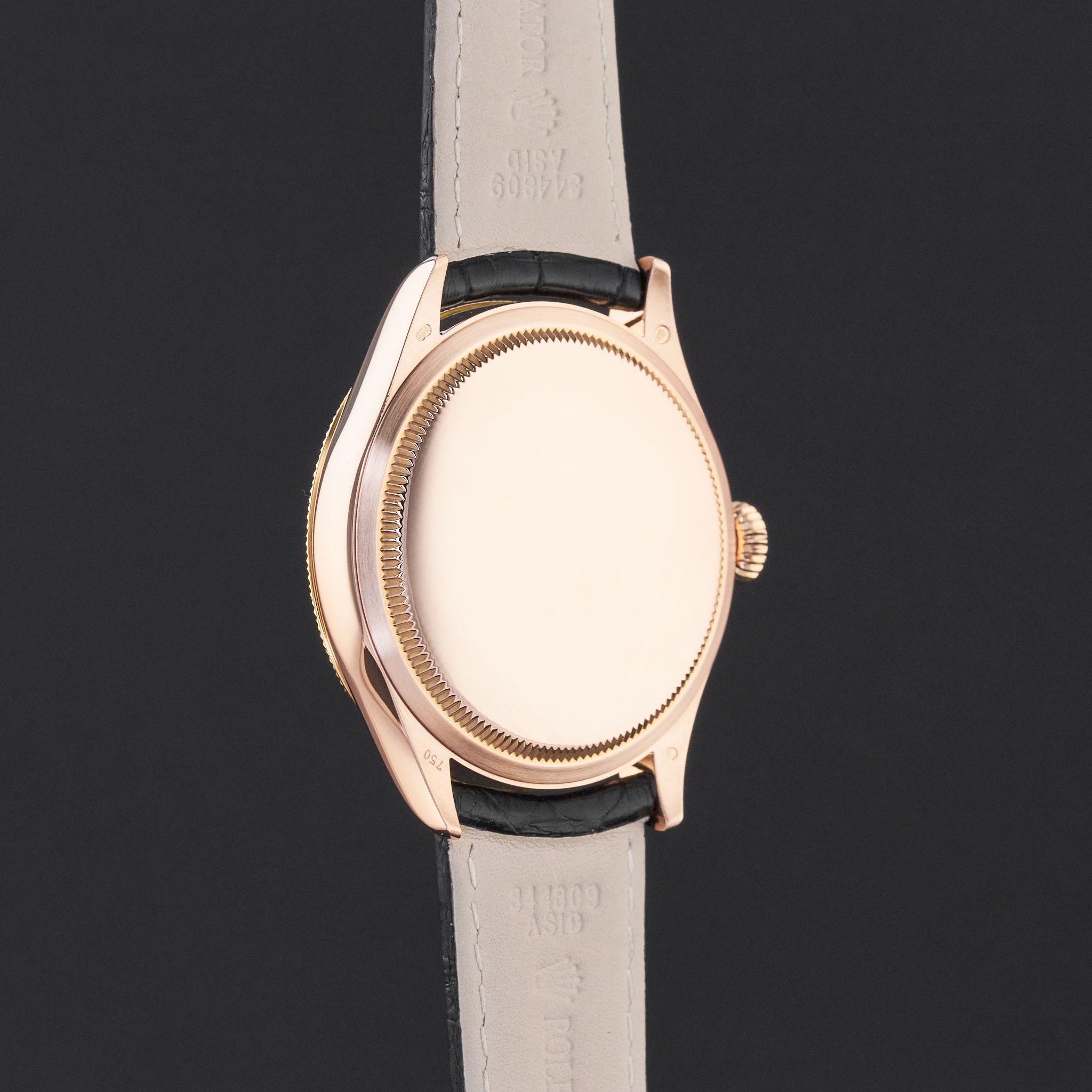 Rolex Cellini Time 50605 – Refined Tradition in Everose GoldThis particular Rolex Cellini Time introduced in 2018, captures the essence of timeless sophistication. It's Everose gold case frames a warm, elegant dial with slender markers and refined hands, emphasizing purity and balance in design. Minimalist yet undeniably luxurious, it reflects Rolex’s dedication to classic watchmaking.An ideal choice for those who value grace and tradition, the Cellini Time 50605 is a distinguished companion that embodies enduring elegance and understated prestige.This Rolex Cellini Time 50605 features a Everose dial and is crafted from 18K rose gold, with a production year of 2018.Case No: 3Q03XXXX