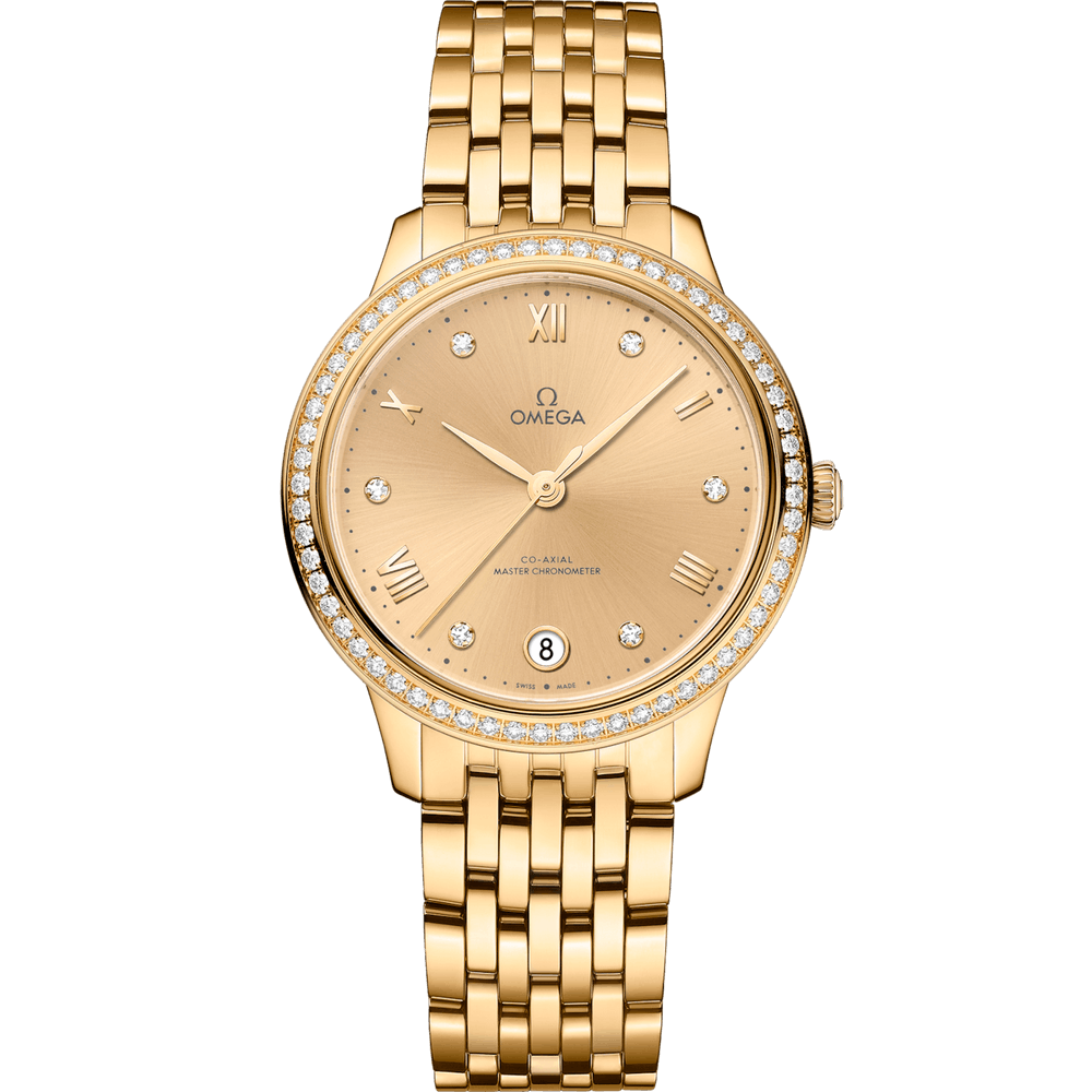 Omega De Ville Omega 434.55.34.20.58.001 De Ville Master Chronometer 34 Yellow Gold - Diamond / Champagne - Diamond / Bracelet