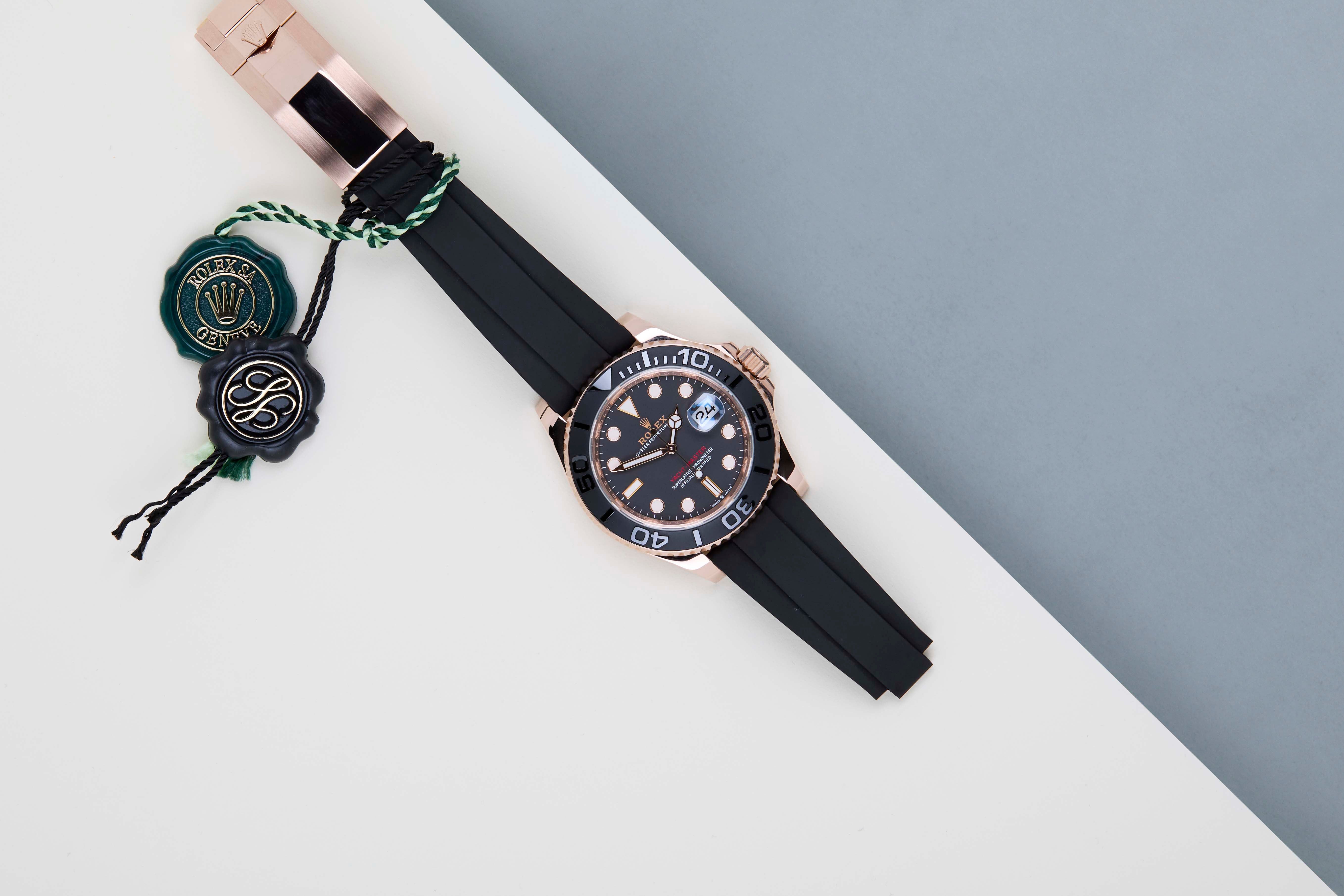 Full Set | International Rolex Warranty until June 2026 | Oysterflex Bracelet D & F The Rolex Yacht-Master 40 reference 126655 is one of the most elegant and prestigious timepieces within the Yacht-Master collection. Since its debut in 1992, the Yacht-Master has symbolized Rolex’s deep-rooted connection to the maritime world. This highly sought-after Rolex Yacht-Master 40 in Everose gold with a black dial and Oysterflex bracelet was first delivered in June 2021. The reference 126655 is crafted from 18k Everose gold, an exclusive alloy developed by Rolex, known for its warm hue and exceptional durability. The bracelet, the innovative Oysterflex, combines the strength of a metal blade with the flexibility and comfort of high-performance elastomer. This construction makes it not only highly resistant to environmental effects but also remarkably comfortable for everyday wear. This Rolex Yacht-Master is in Mint condition and comes with the original Rolex Warranty Card and Box. Furthermore, the watch still has Worldwide Rolex Warranty until June 2026.