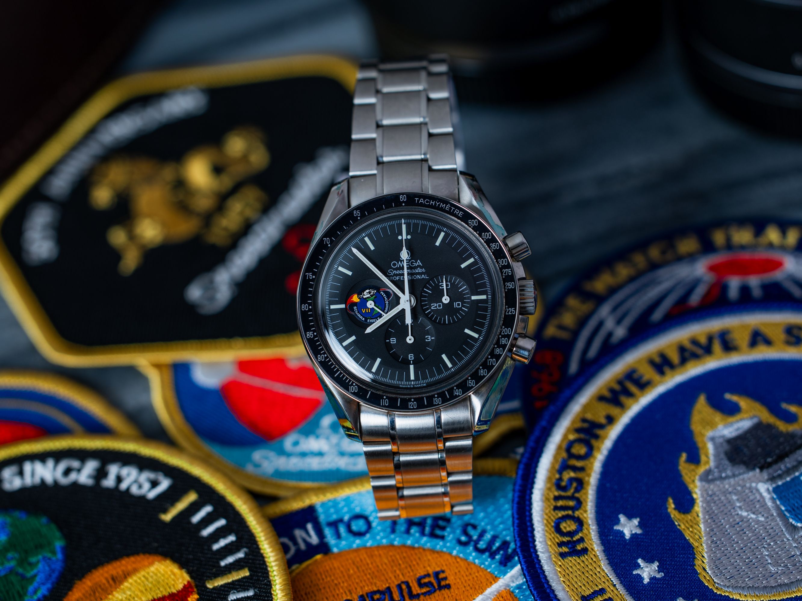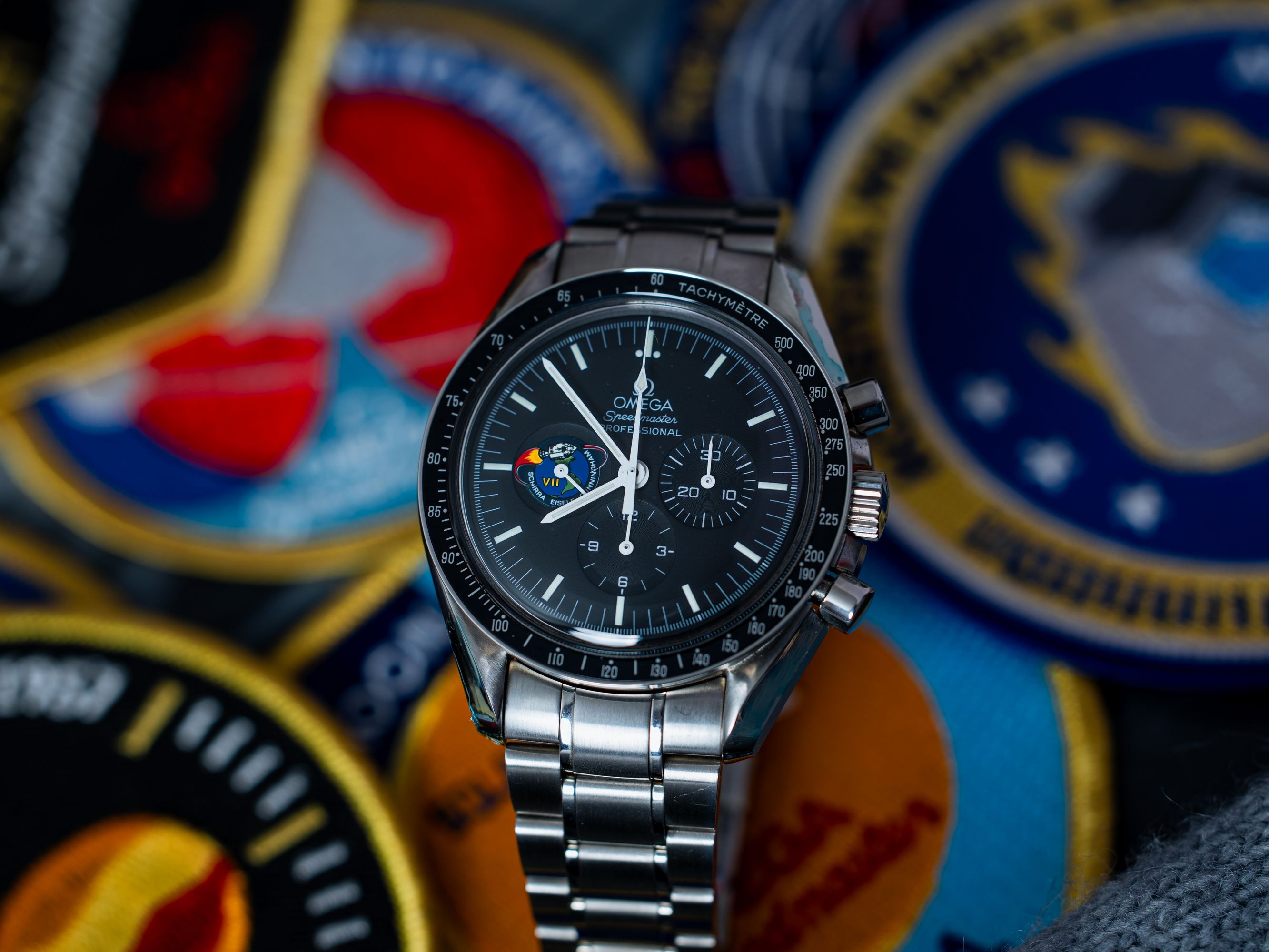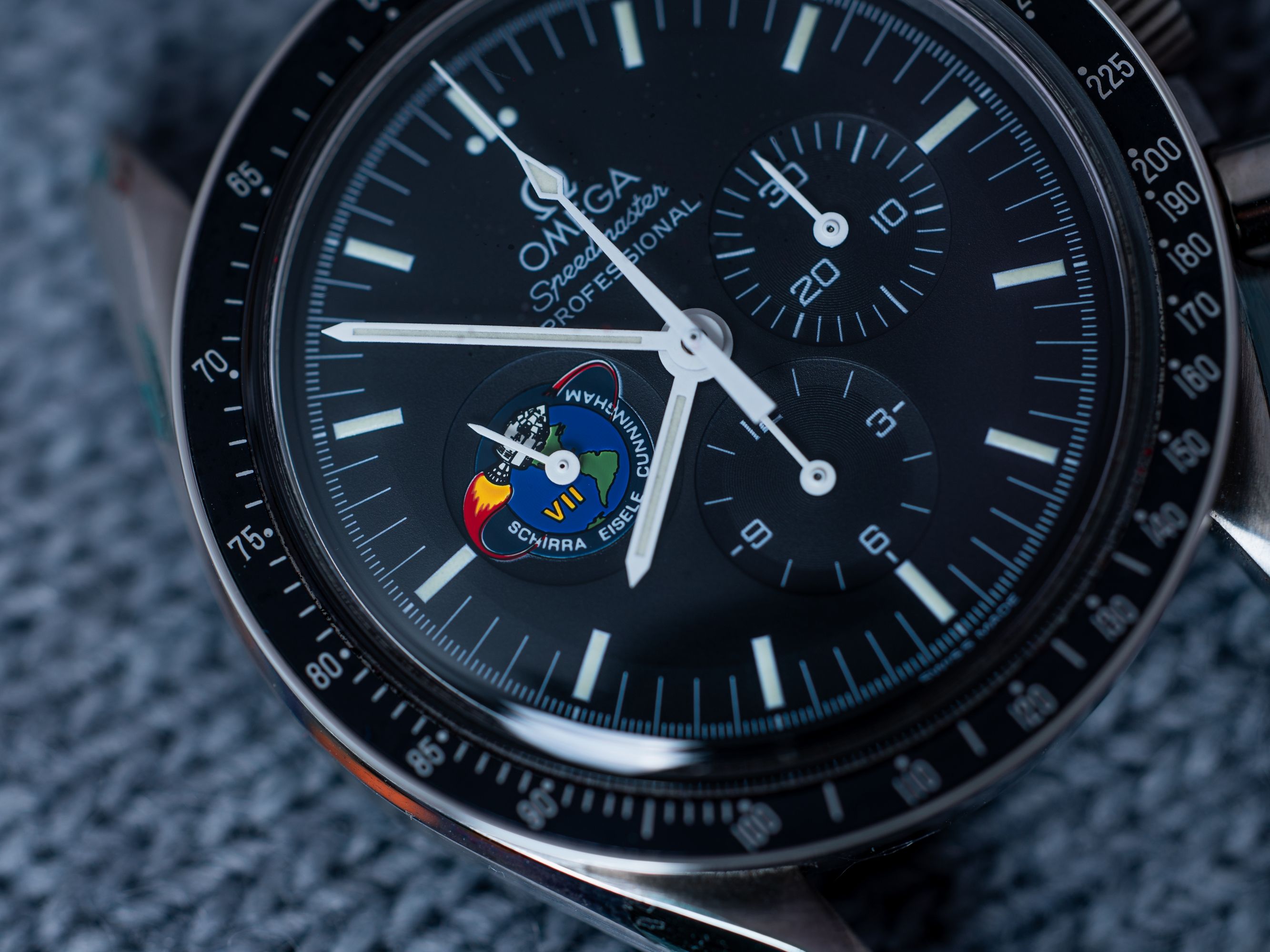 This model is part of the legendary “Missions” collection, produced between 1997–1998. On the sub-dial at 9 o’clock you’ll find the Apollo VII mission patch, commemorating the historic flight that took place October 11–22, 1968, crewed by Walter M. Schirra, Donn F. Eisele, and R. Walter Cunningham.