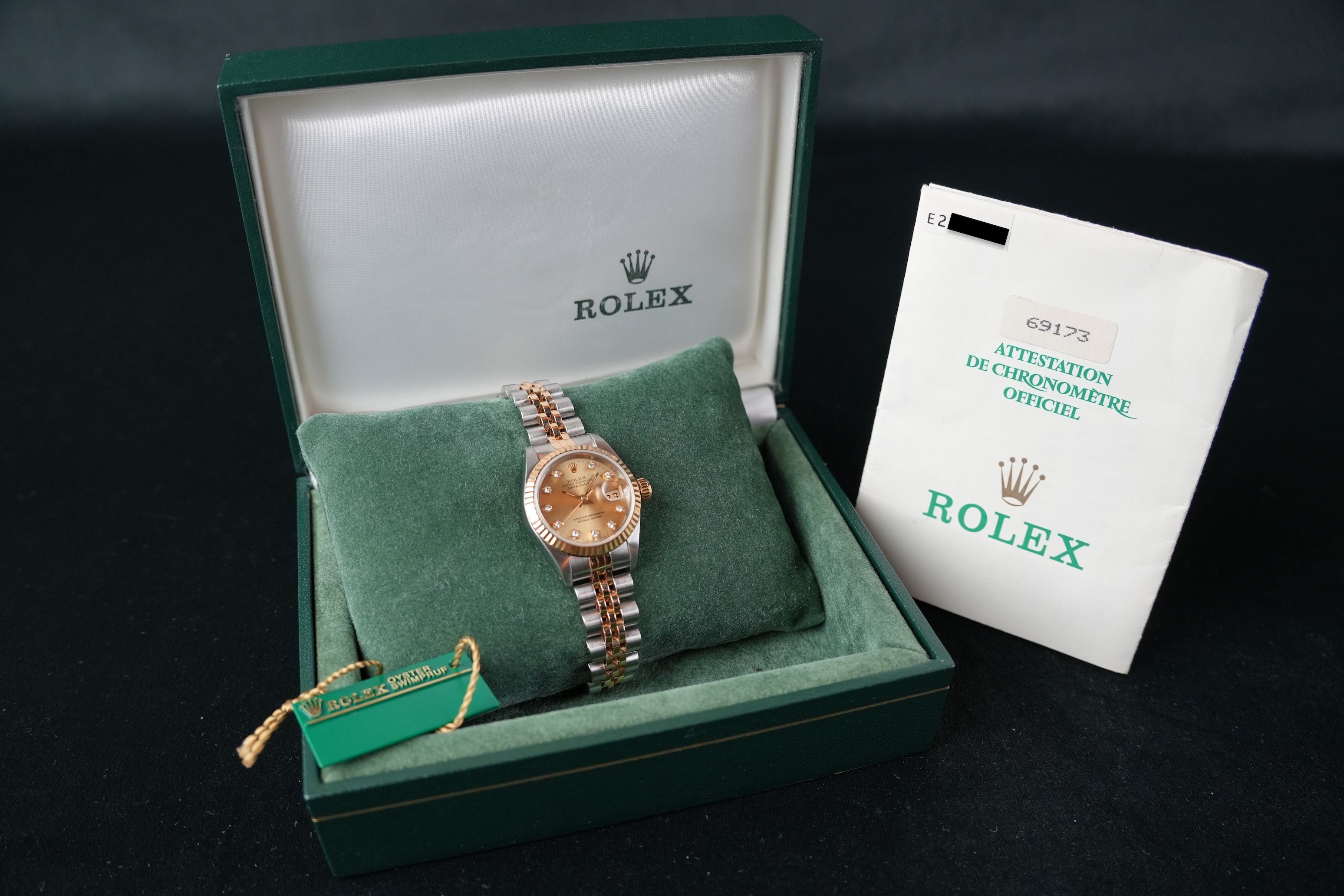 Dial colour is champagne with diamond index.Originally sold by Rolex 01/1991, LC400 (Hong Kong).