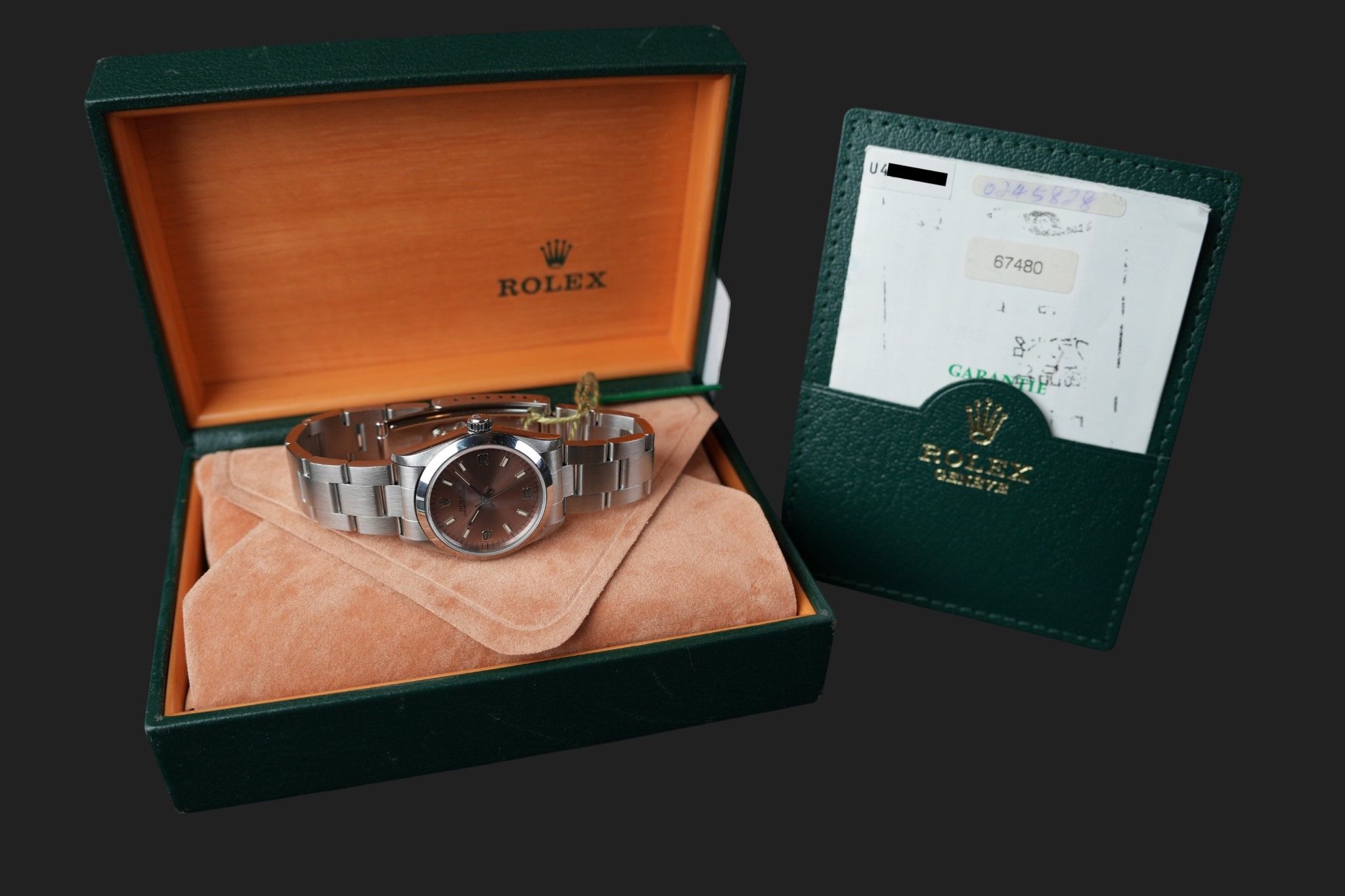 Dial colour is pink.Originally sold by Rolex 07/1999, LC400 (Hong Kong).