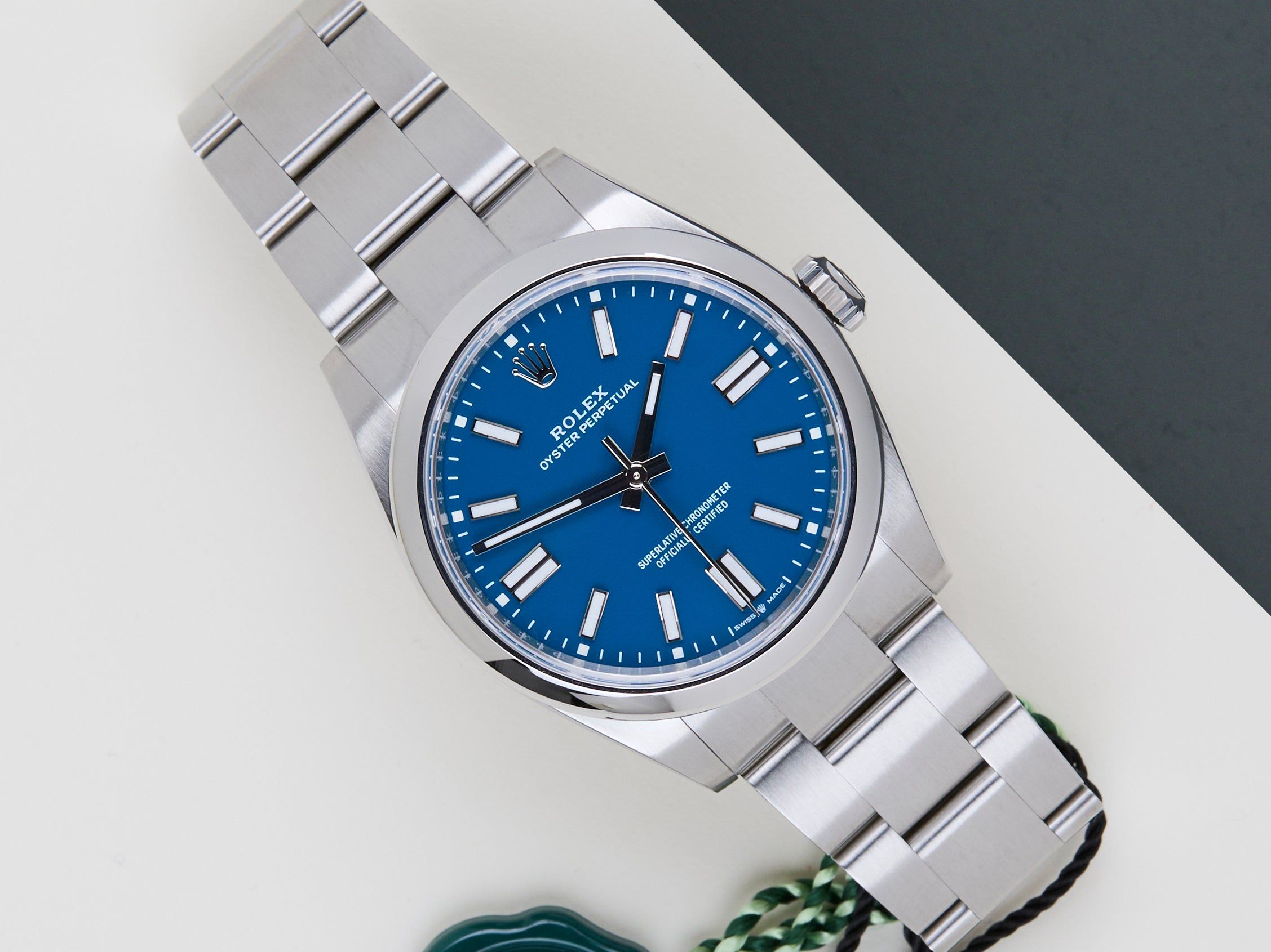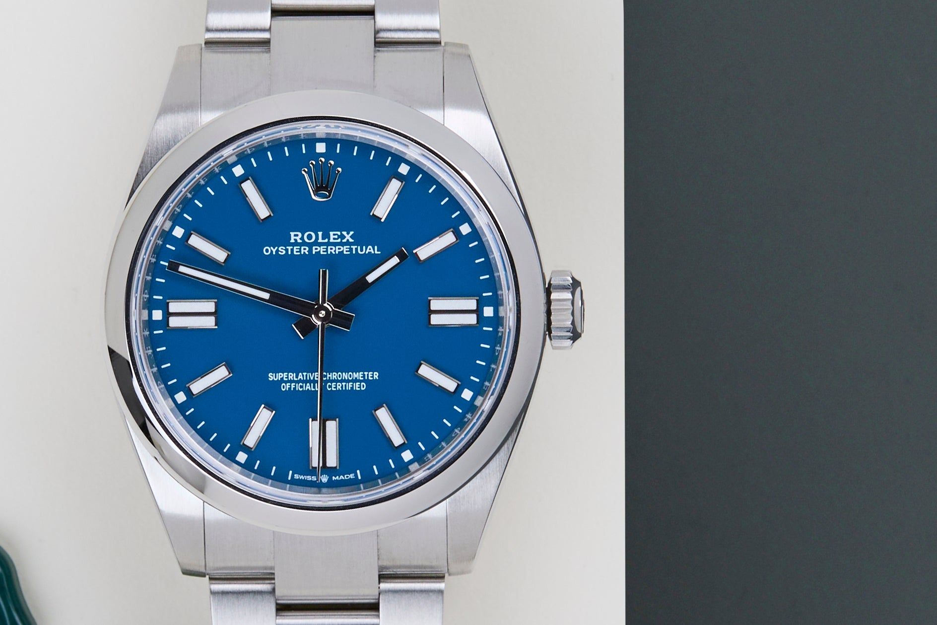 New & Unworn | Full Set | International Rolex Warranty Until June 2030 The Rolex Oyster Perpetual was first introduced by Rolex in the 1930s. It is characterized by its water-resistant Oyster case and self-winding Perpetual movement. The Rolex Oyster Perpetual is a simple yet elegant timepiece that is suitable for both casual and formal wear.This Rolex Oyster Perpetual 'Blue Dial' was sold for the first time in June 2025.The watch is fully made out of stainless steel. Rolex uses 904L in its steel watches, which is an extremely resistant and highly polishable superalloy.The Rolex reference 124300 and 134300 differ mainly in movement and case design, with the 134300 featuring the newer 3230 movement and a subtly updated case shape, and a bigger crown.This Rolex Oyster Perpetual 41 is in New & Unworn condition and comes with the original Rolex Warranty Card and box. Furthermore, the watch still has Worldwide Rolex Warranty until June 2030.