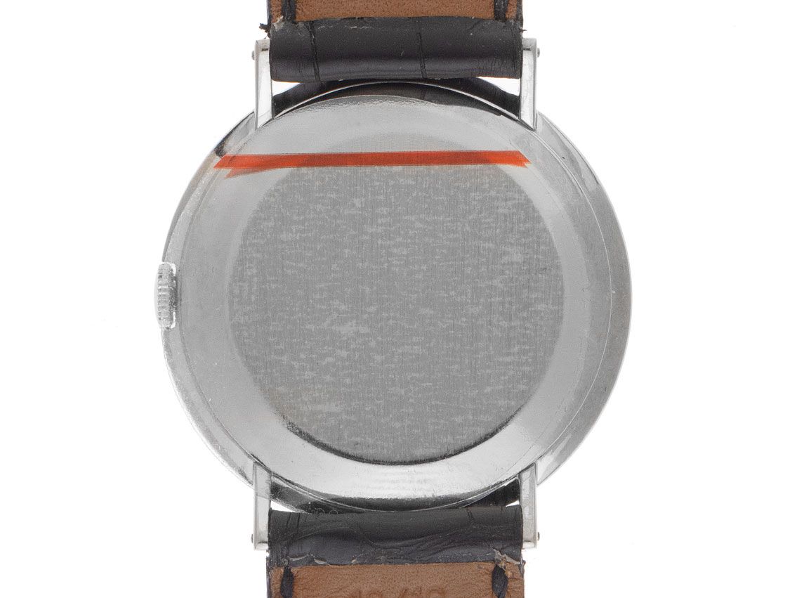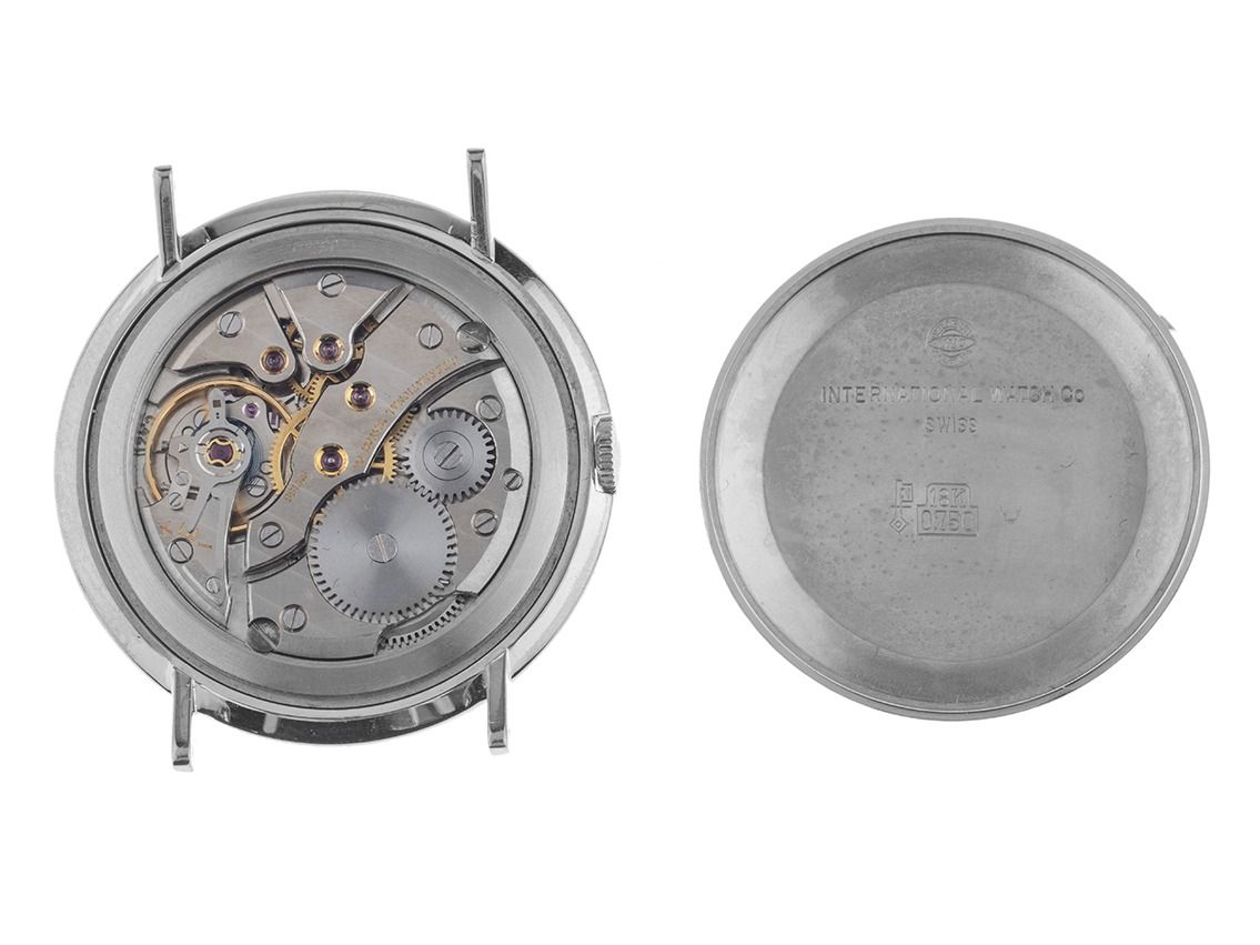 Boîtier en or blanc 18kt poli, diamètre du boîtier sans couronne 33mm, hauteur du boîtier 8,2mm. Lunette en or blanc 18kt sertie de diamants, environ 1,4ct TW / VVSI (Blanc fin avec des inclusions très très petites). Bracelet en cuir noir, largeur d'attache 18mm, boucle ardillon en acier inoxydable. Cadran argenté avec index en acier inoxydable appliqués et aiguilles en acier inoxydable. Mouvement remontage manuel, calibre IWC C.421 avec 17 pierres précieuses. Affichage de l'heure et des minutes par aiguilles centrales. Verre acrylique bombé. Couronne striée encastrée dans le boîtier. Fond en or blanc 18kt. Poids de la montre avec bracelet 39g. Numéro de boîtier : 1715XXX, année de fabrication : 1965, ID : P171534001025H-5200, numéro d'article : 10000082636. Avec contrôle de marche et révision extérieure complète d'octobre 2025. Boîte IWC d'origine ainsi qu'un extrait du Watchregister d'octobre 2025, certificat The Watch Register / sans inscription (base de données internationale pour montres perdues ou volées). Super affaire, investissement avec potentiel de valorisation, pièce de collection extrêmement rare. Très bon état. Délai de livraison immédiat.