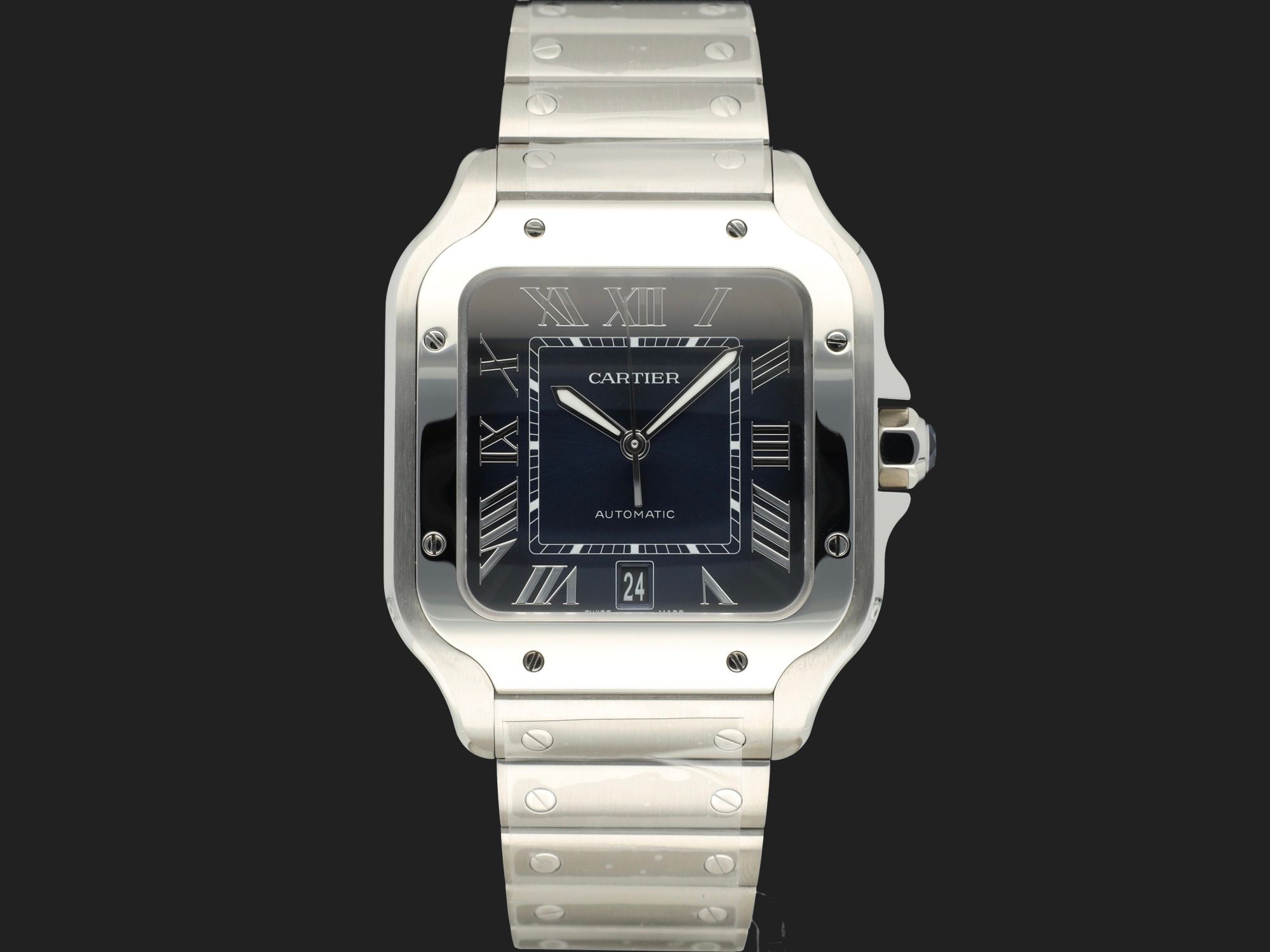 Cartier Santos Santos Large Date Steel Blue Dial WSSA0071 NEW