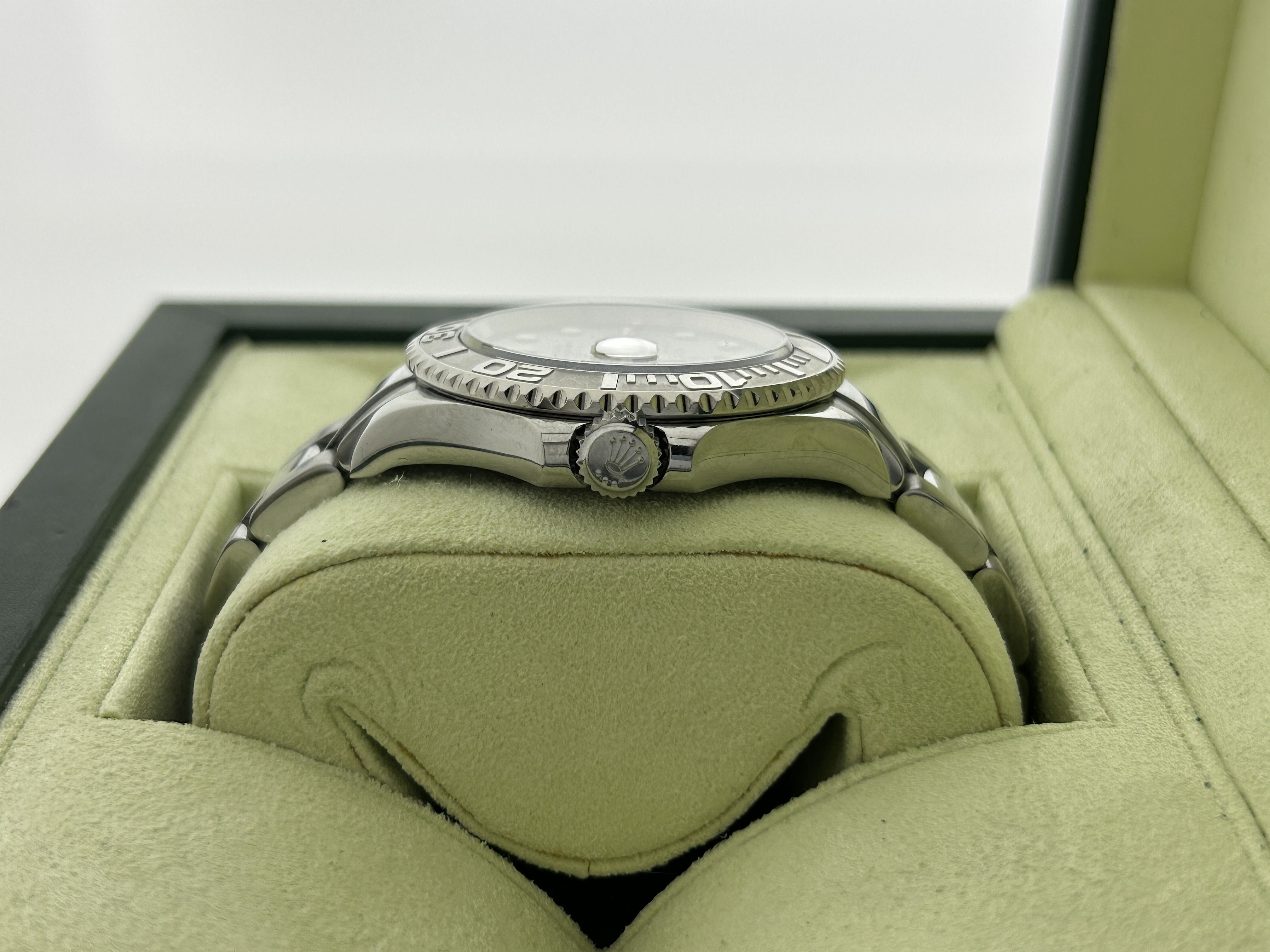 The Rolex comes with 24 months of warrantyA vintage Rolex Yacht-Master watch, ref. 16622, from 2004. The Rolex has a steel 40mm case with a steel Oyster-bracelet. The watch has a silver dial with a datewindow at 3 o'clock. The Rolex Yacht-Master has been serviced recently and is in a good condition. The watch has a sticker on the back of the case and minor scratches on the bezel between 10 and 12 o'clock, see pictures.