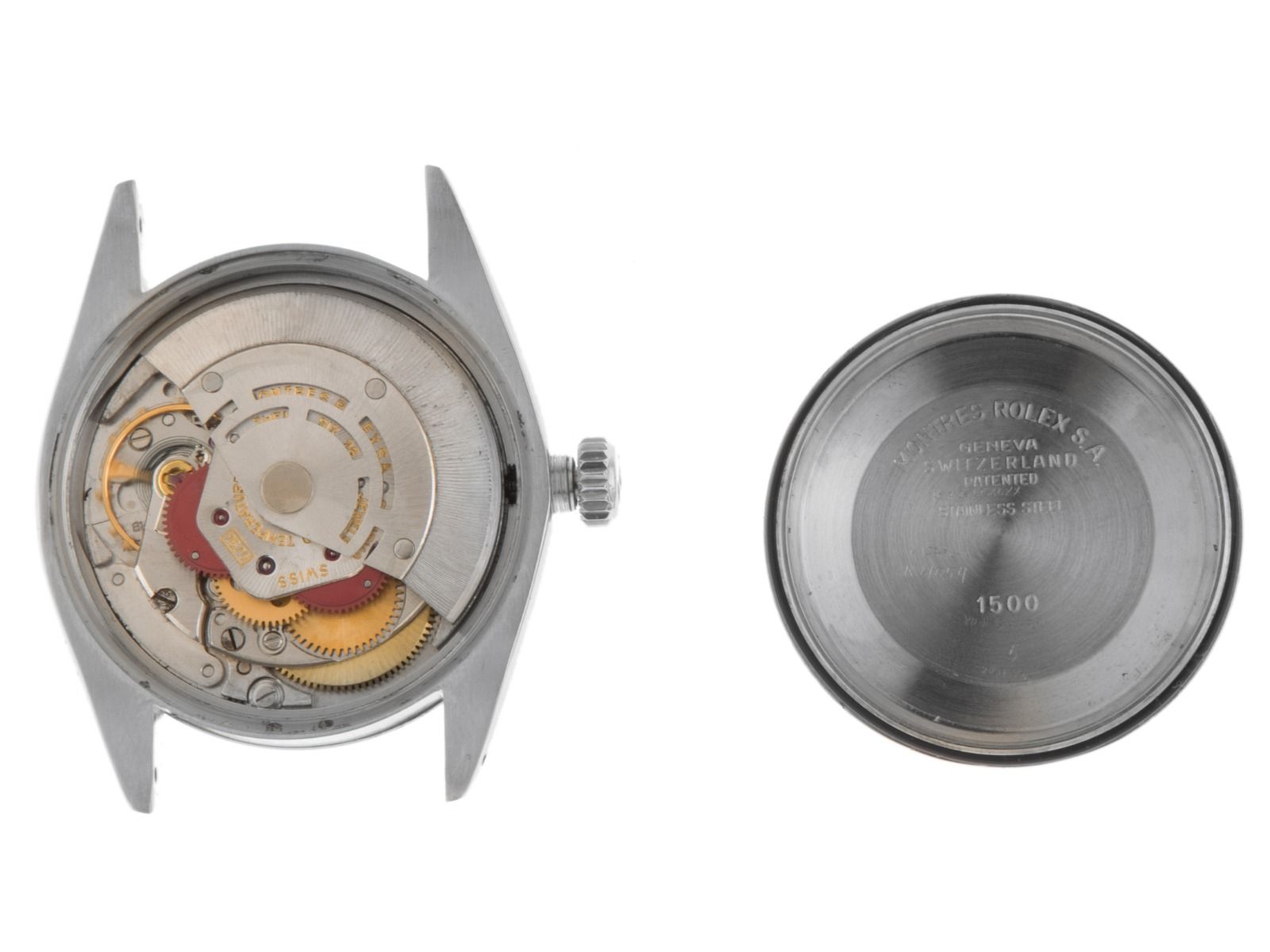 Boîtier en acier poli et satiné, diamètre du boîtier sans couronne 34mm, hauteur du boîtier 12,5mm. Lunette en acier lisse et poli. Bracelet Oyster en acier poli et satiné, boucle déployante Rolex en acier avec logo du fabricant. Cadran blanc avec chiffres romains noirs et aiguilles en or blanc. Mouvement automatique, chronomètre, calibre manufacture Rolex 1570 avec 26 pierres précieuses. Affichage de l'heure, des minutes et des secondes par aiguilles centrales avec stop-seconde pour un réglage précis de l'heure, affichage de la date sous verre loupe à 3 heures, open 6/9 (6 et 9 ouverts dans l'affichage de la date). Plexiglas. Couronne vissée avec logo du fabricant. Fond en acier vissé. Poids de la montre y compris le bracelet 86g, longueur du bracelet y compris le boîtier 190mm. Numéro de référence : 1500, numéro de boîtier : 6478XXX, année de fabrication : 1980, ID : P182760001025H-6800, numéro d'article : 10000082943. Avec contrôle de marche et révision extérieure complète de novembre 2025. Boîte Rolex originale avec carton d'emballage et description, étui en cuir, livret de traduction, sceau de chronomètre Rolex ainsi qu'un extrait du Watch Register de novembre 2025, Certificat The Watch Register / sans inscription (base de données internationale pour montres perdues ou volées), Full Set. Investissement avec potentiel de valorisation, pièce de collection très rare. Très bon état. Délai de livraison immédiat.