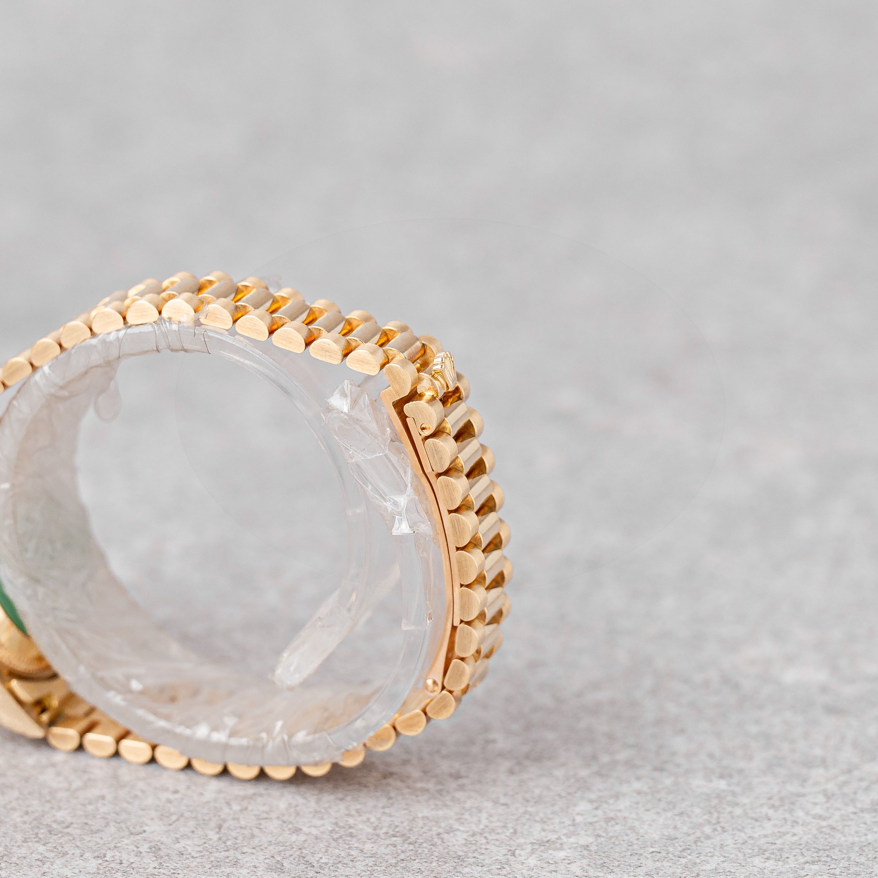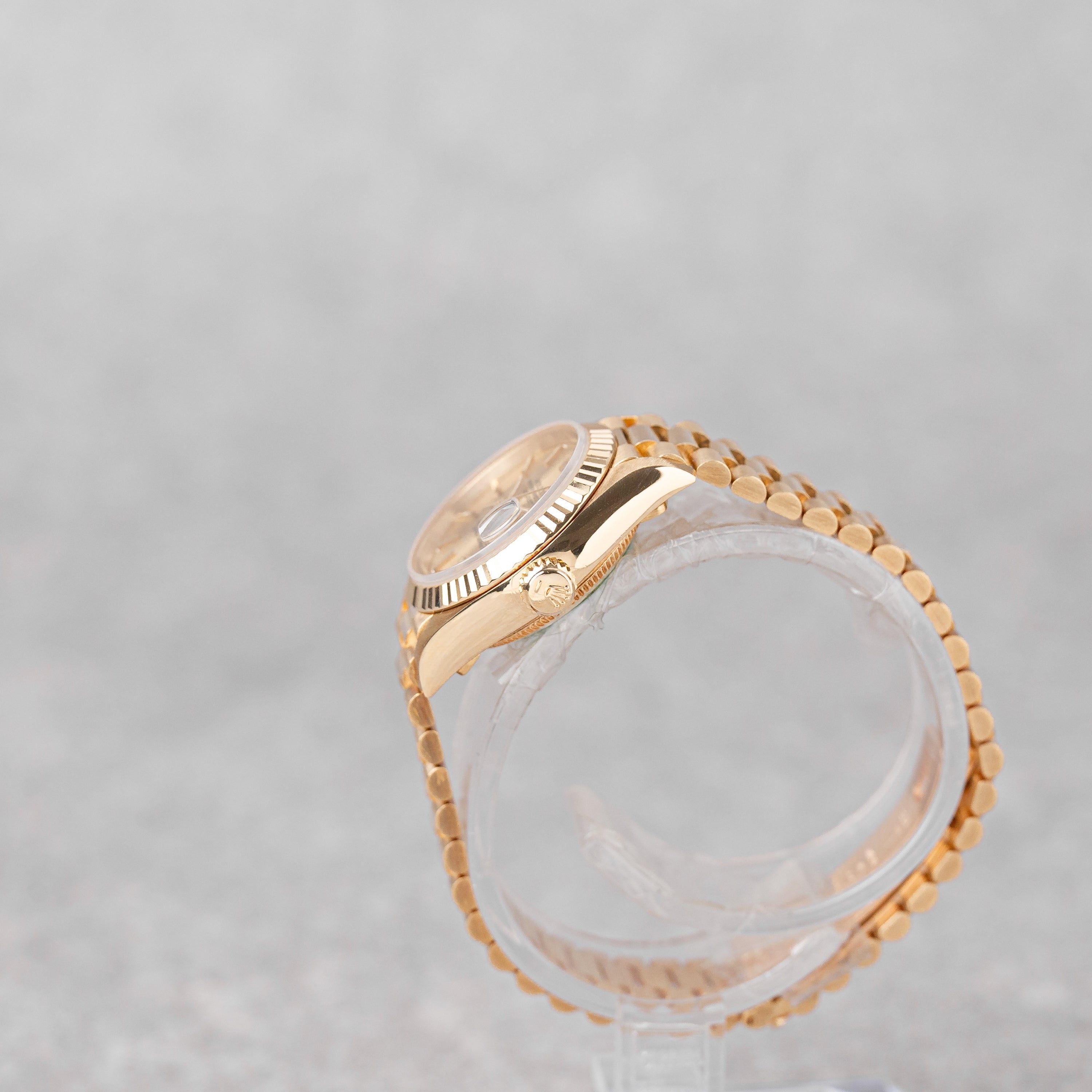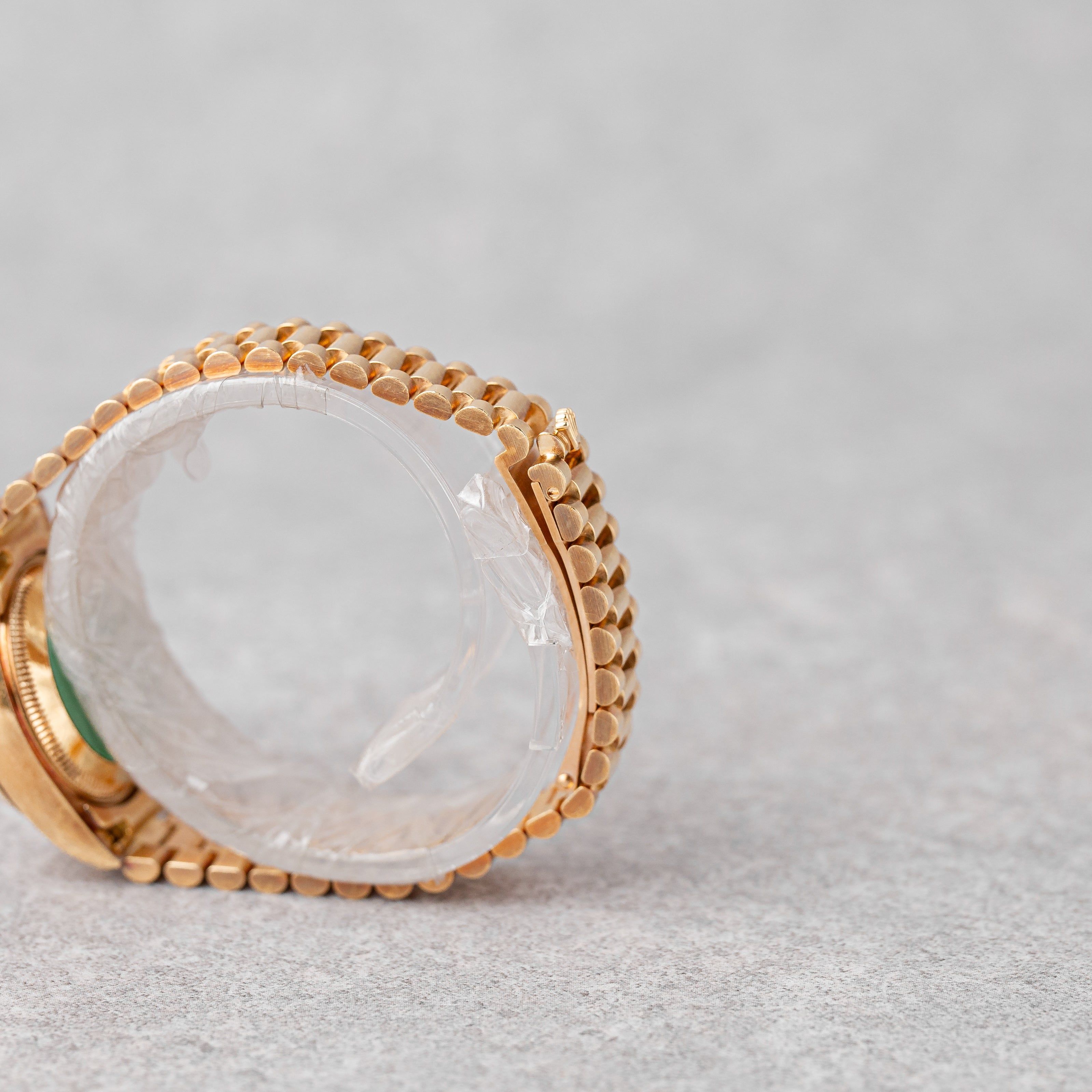 A timeless symbol of elegance, this Rolex Lady-Datejust 26 in 18k yellow gold features a classic champagne dial, exuding warmth and sophistication. Delivered as a Full Set, the watch remains unpolished, preserving its original shape, with a tight President bracelet showing no stretch and in excellent overall condition. It has been fully serviced by our watchmaker in 11/2025 and comes ready to wear. a beautiful example of Rolex craftsmanship and enduring luxury.