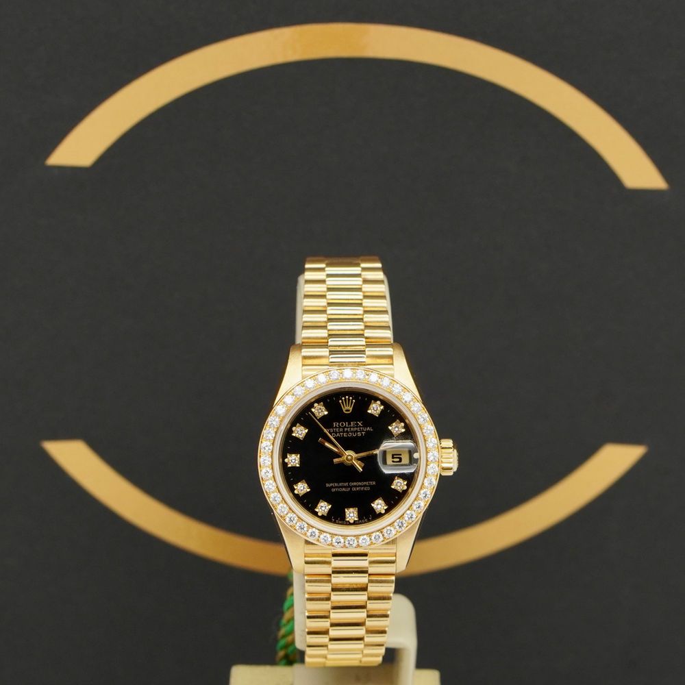 Rolex Lady-Datejust 69138 with Box & Papers from 1999. Very good condition. Every watch is checked on authenticity by our master watchmakers. With every sale an authenticity certificate is given. On every watch there is a warranty of 12 months on the watch and movement. Although it is rarely used since watches are maintained and - if neccesary - serviced before being sold.